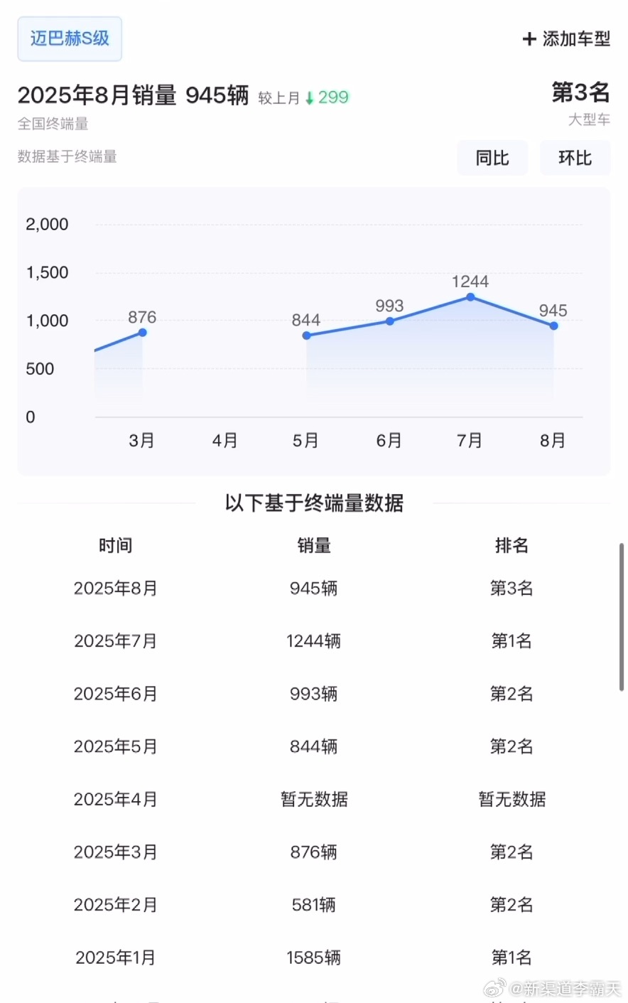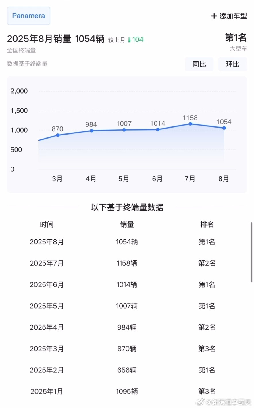此前这个赛道的TOP2是迈巴赫S(图2)和帕拉梅拉(图3),月销在1000左右波动;