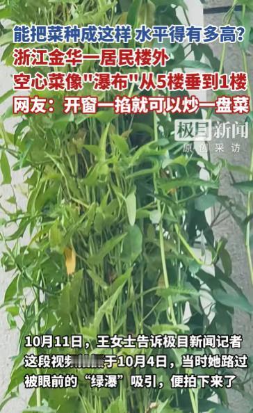 浙江惊现“空心菜瀑布”!5楼垂到1楼,网友:这户人家怕是要吃一整年浙江金华