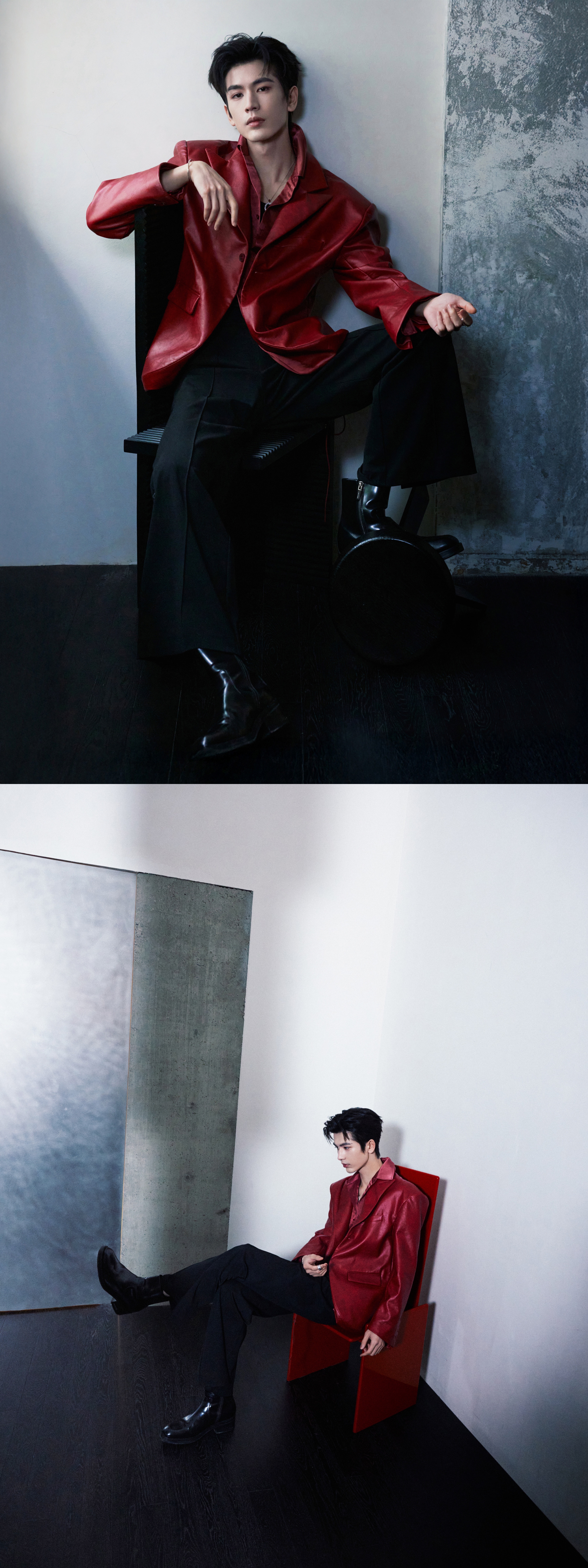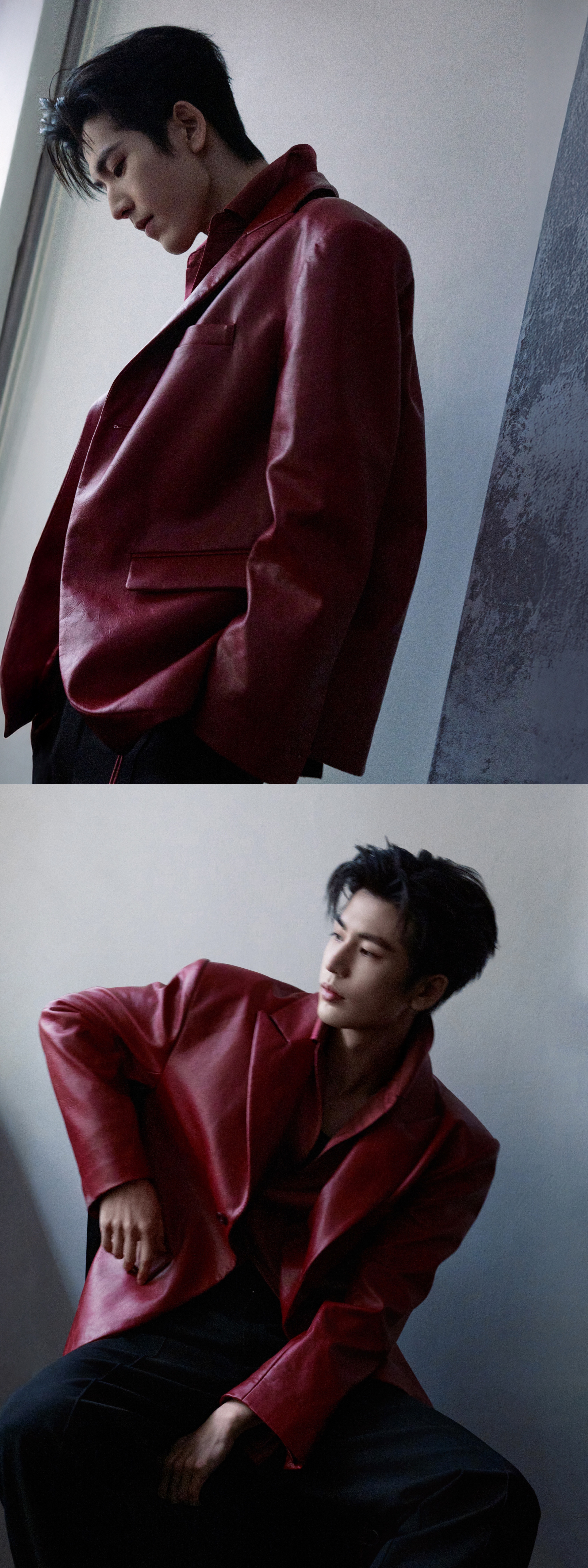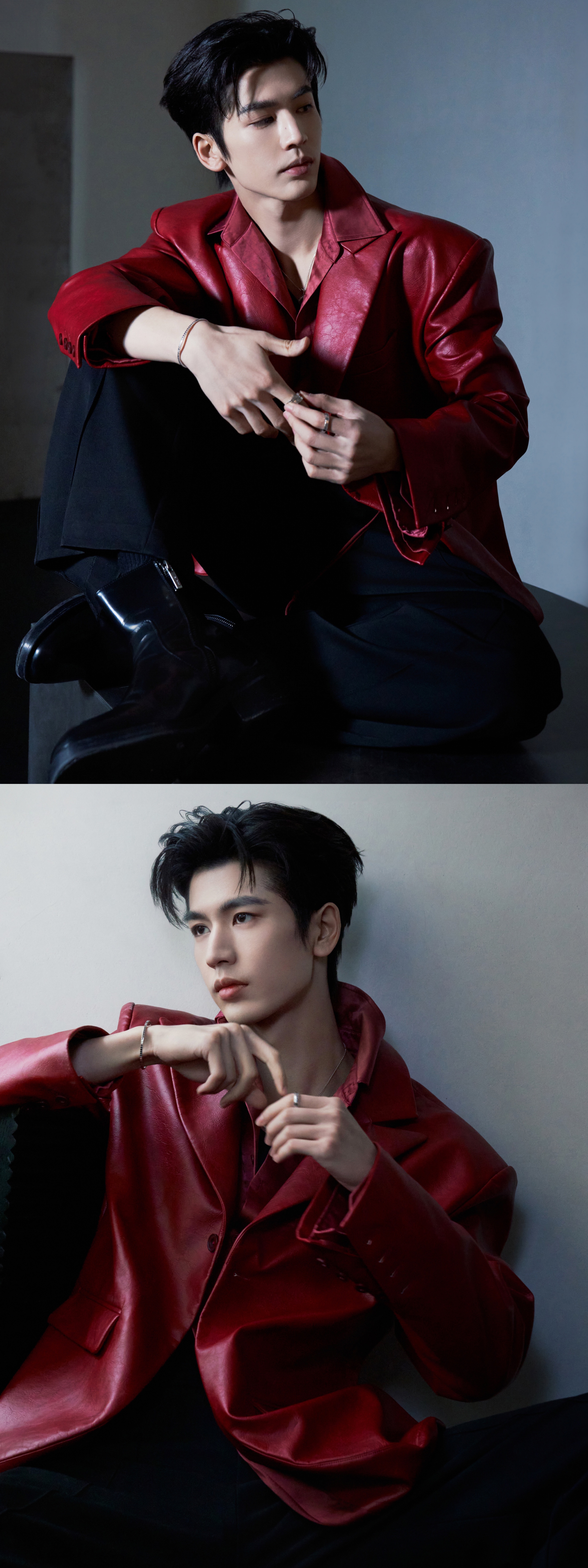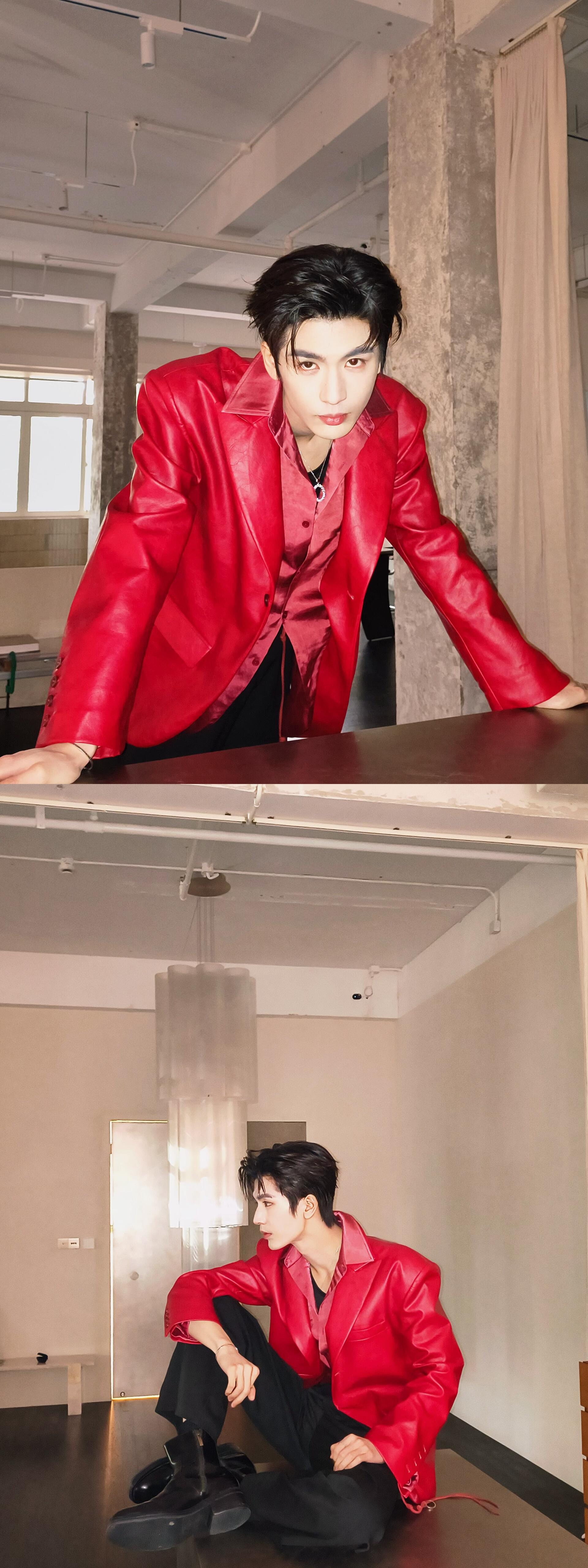 就这样把出发图拍成杂志大片[流鼻血][流鼻血]张凌赫红皮衣缎面衬衫