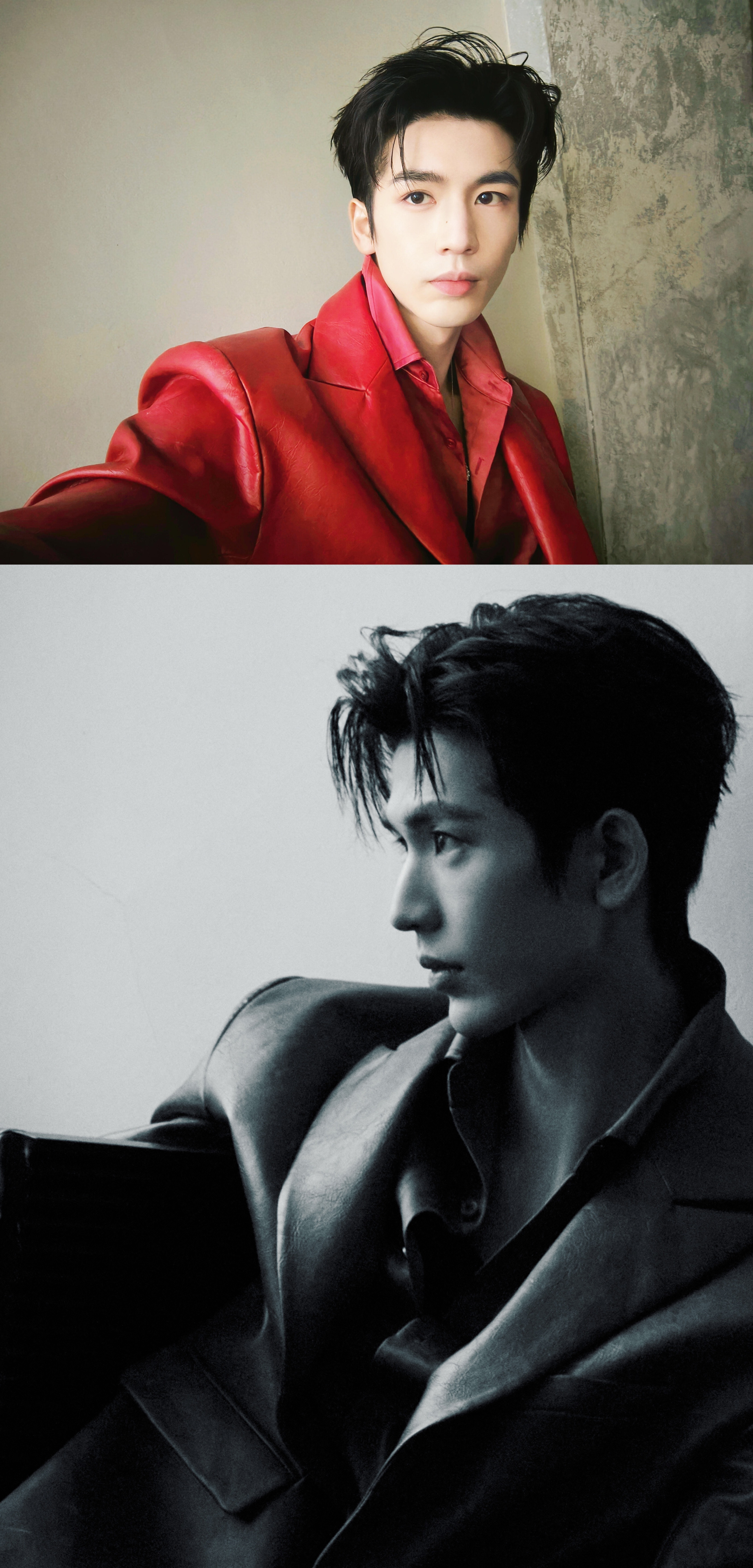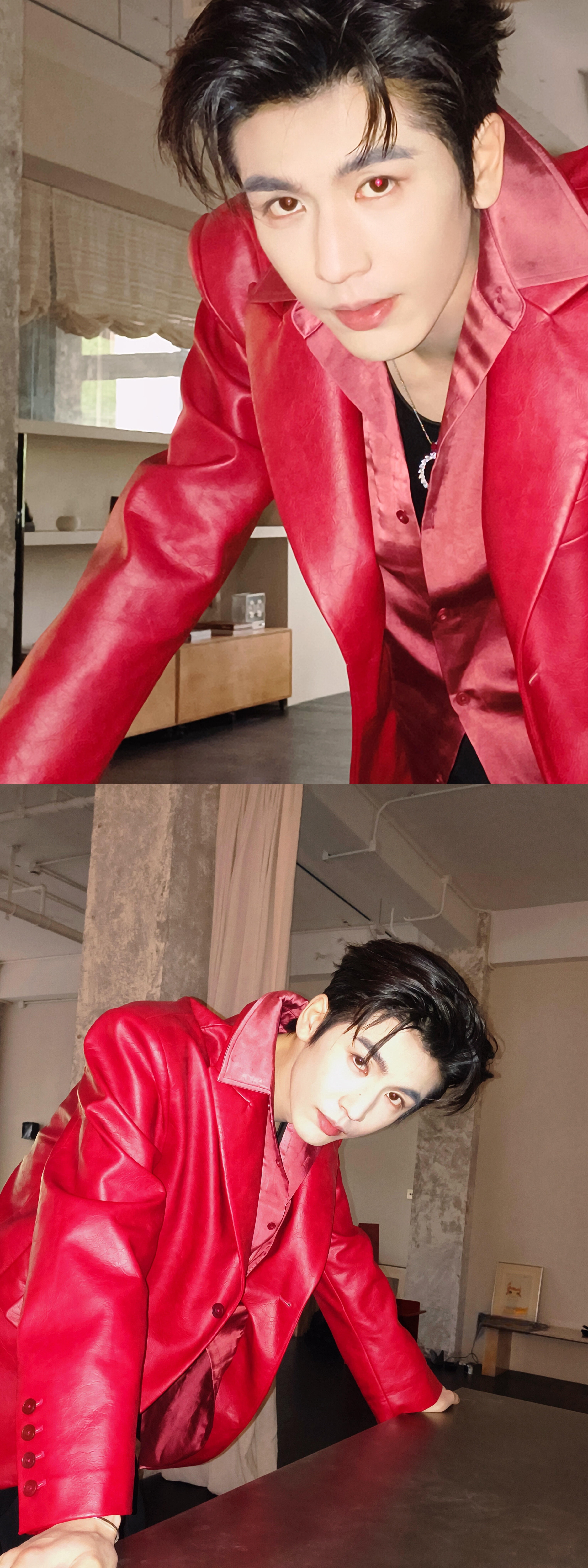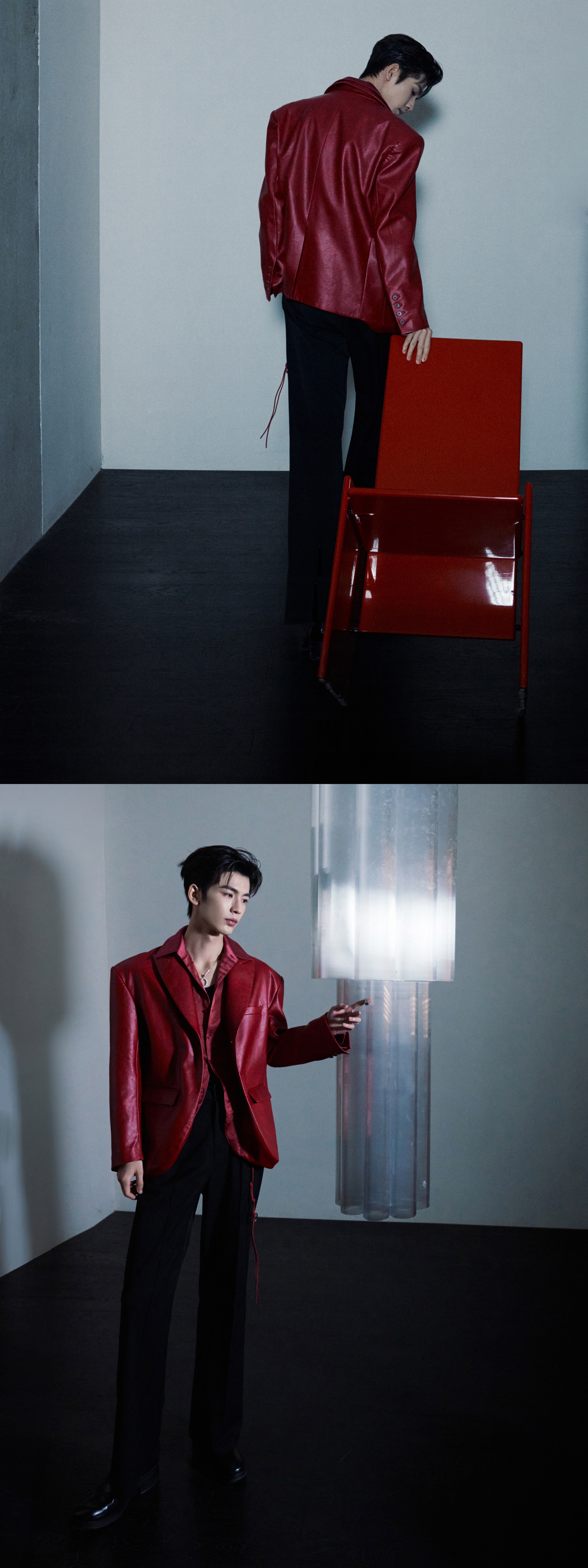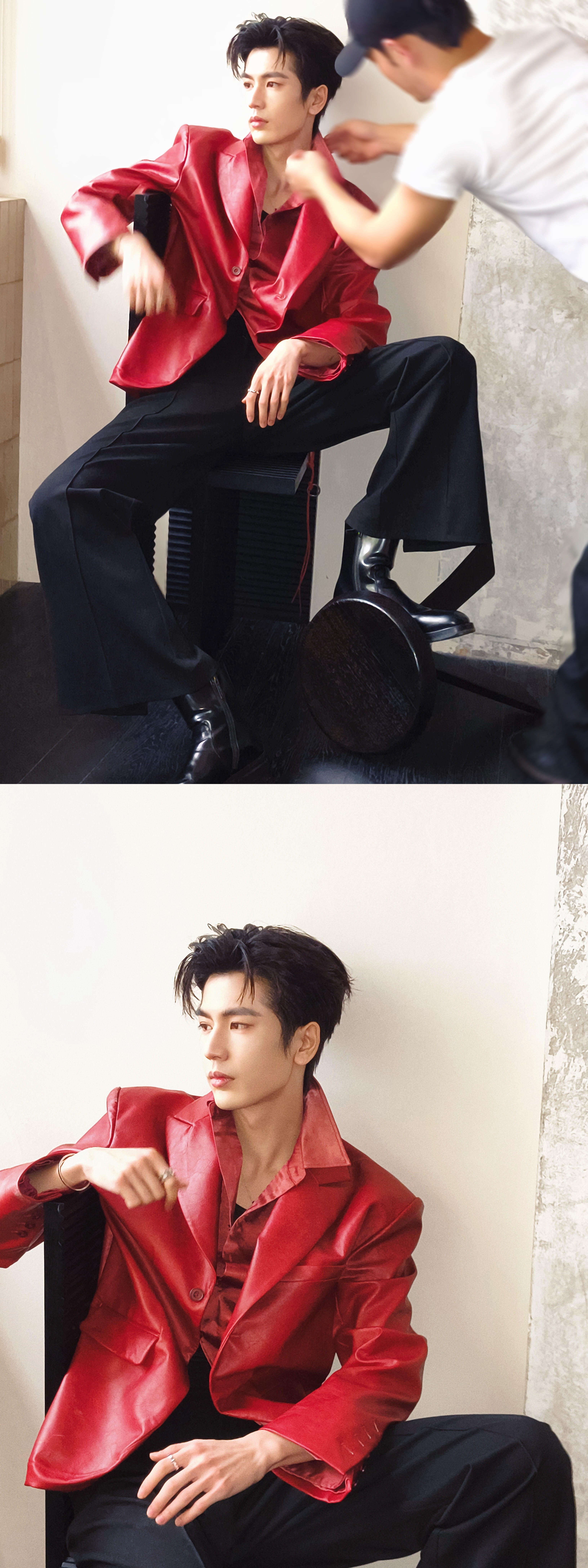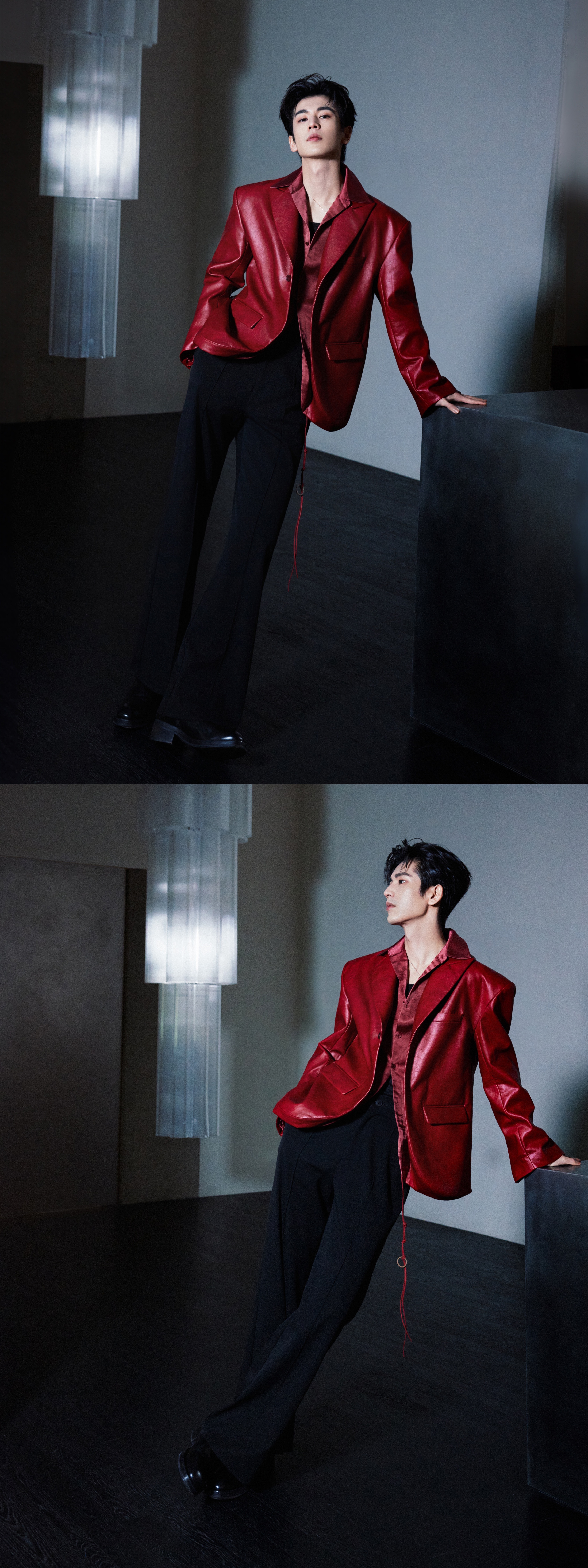 就这样把出发图拍成杂志大片[流鼻血][流鼻血]张凌赫红皮衣缎面衬衫