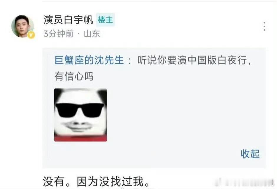 白宇帆辟谣将出演白夜行白宇帆辟谣将出演《白夜行》,称没有找过他!白宇帆说白夜行没