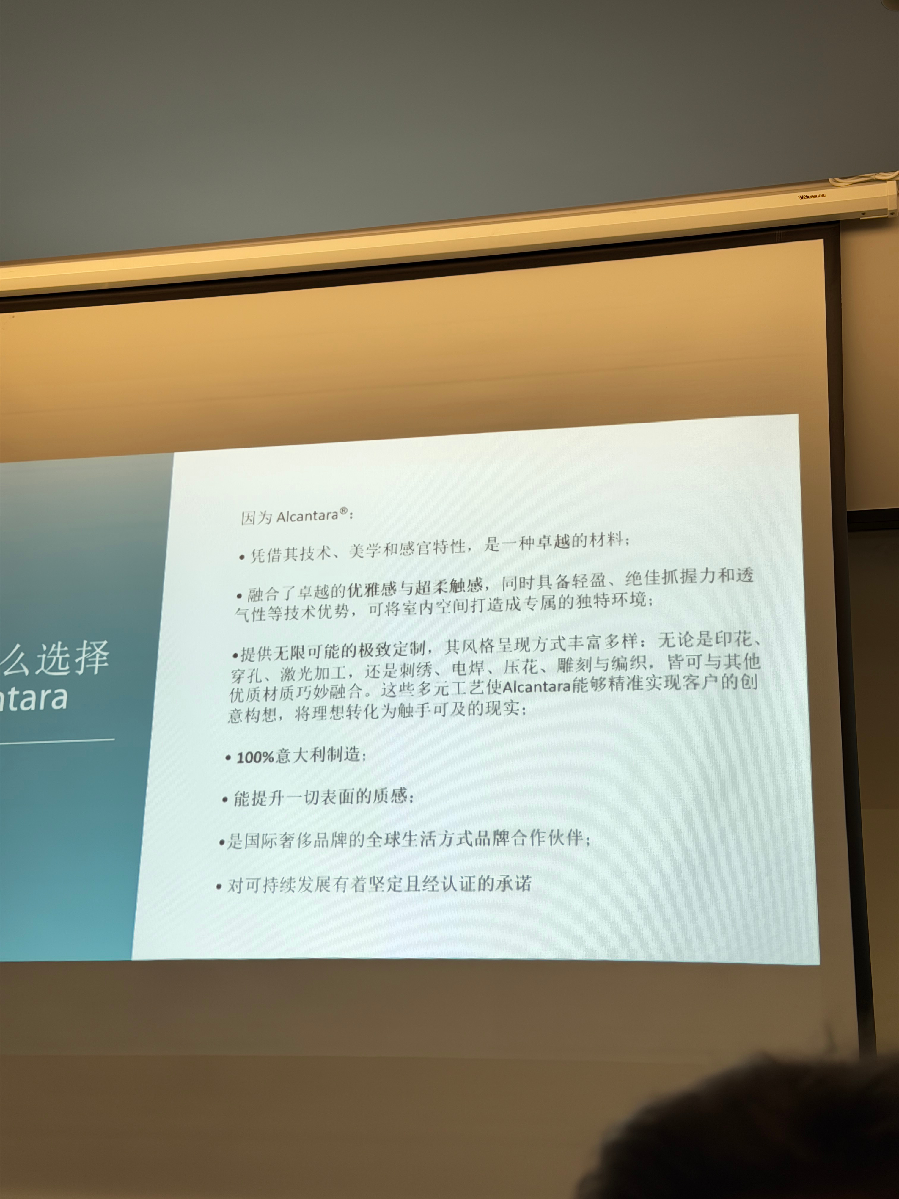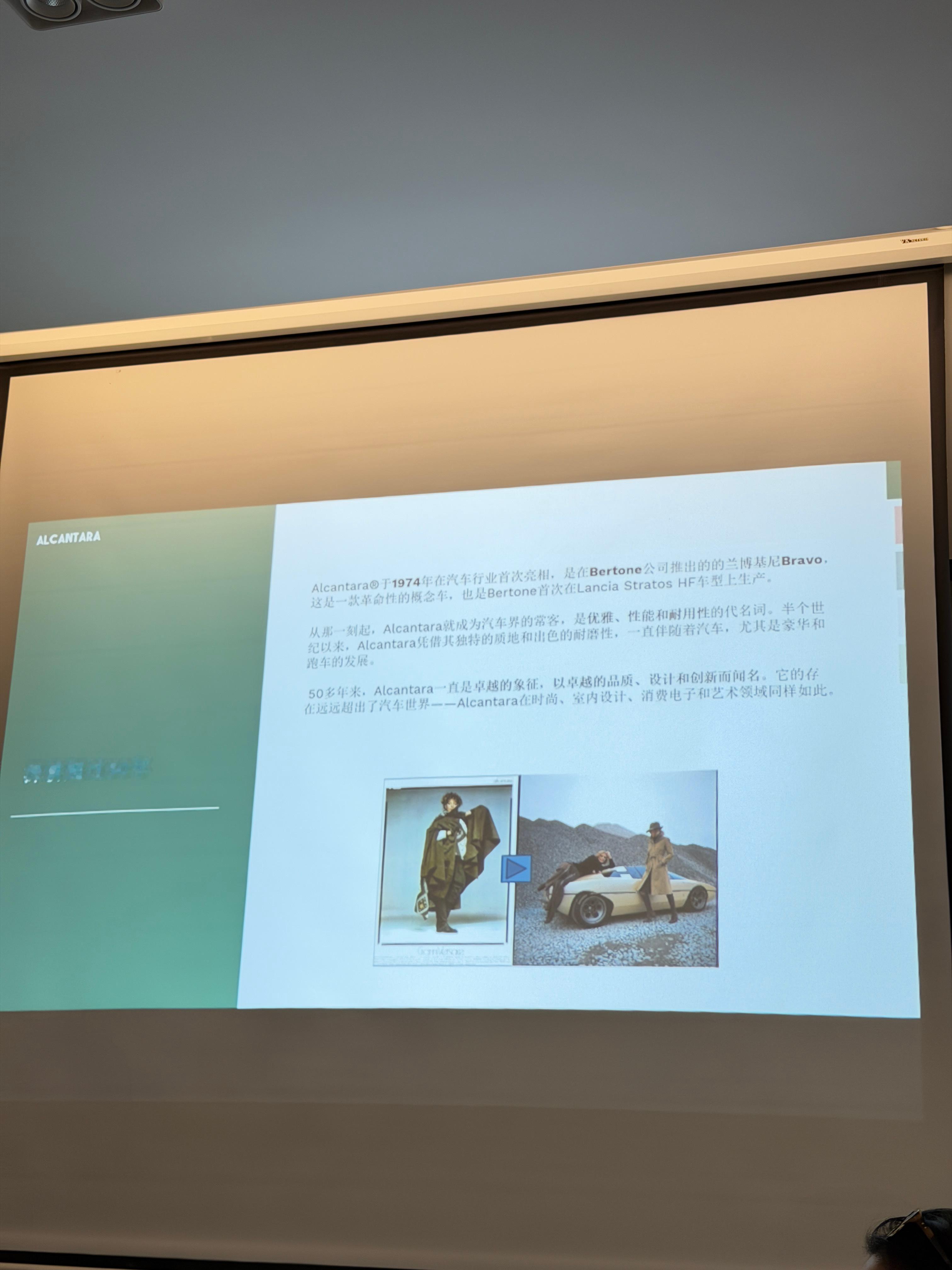 全球CEO Eugenio Lolli就坐我旁边,他说alcantara不仅是单一的材质,它是一个注册的商标,有很多衍生产品序列。