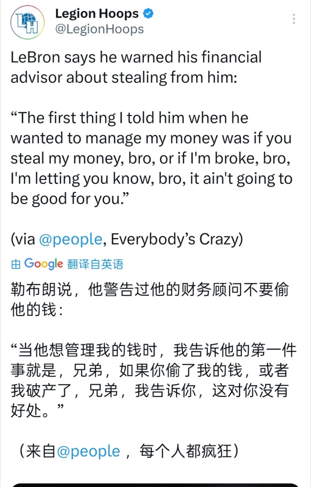 ☞这条我觉得阿勒做的是对的,已经出了不少NBA球员的财务顾问私自挪用或者盗取球员