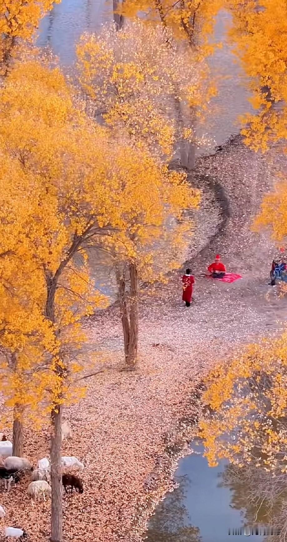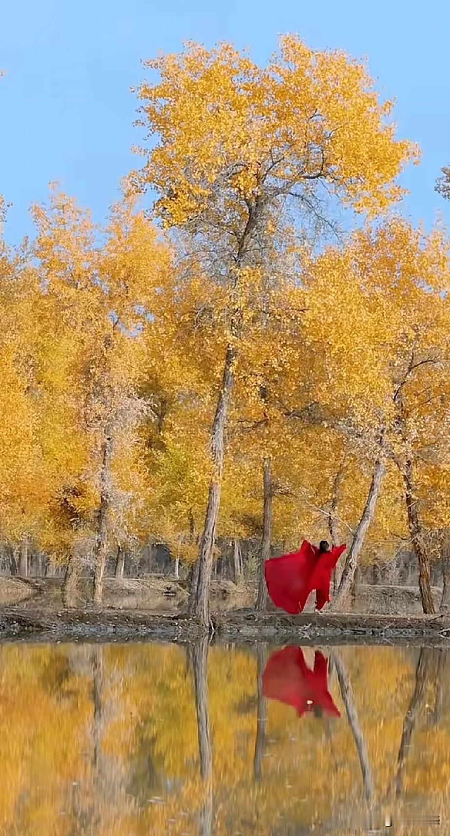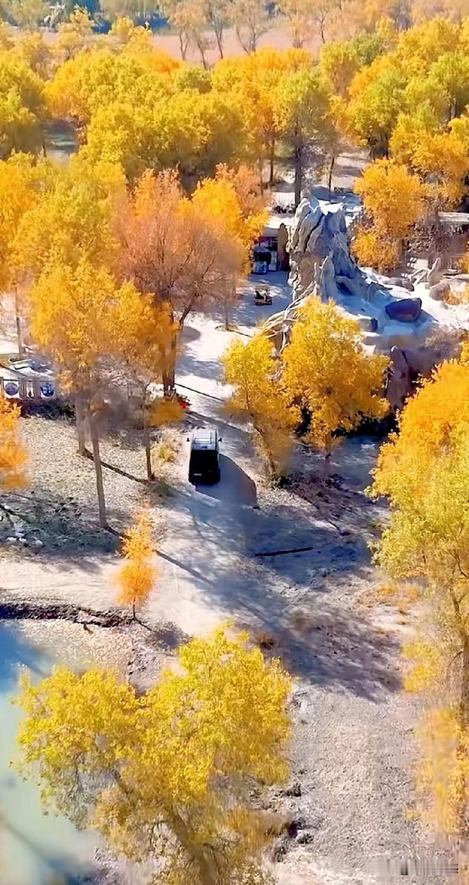 这里的树叶金黄金黄的,虽然色彩比较单一,但是却有一种独特的、不同寻常的美,这与那些五彩斑斓的树叶是不一样的,这种单一颜色的树叶,显得特别的高贵,特别的清新,特别的热情,大美新疆的美,太苍茫了,太辽阔了,有生之年,一定要到新疆去看一看,如此美景要是不看的话,真是白来世上走一回了!