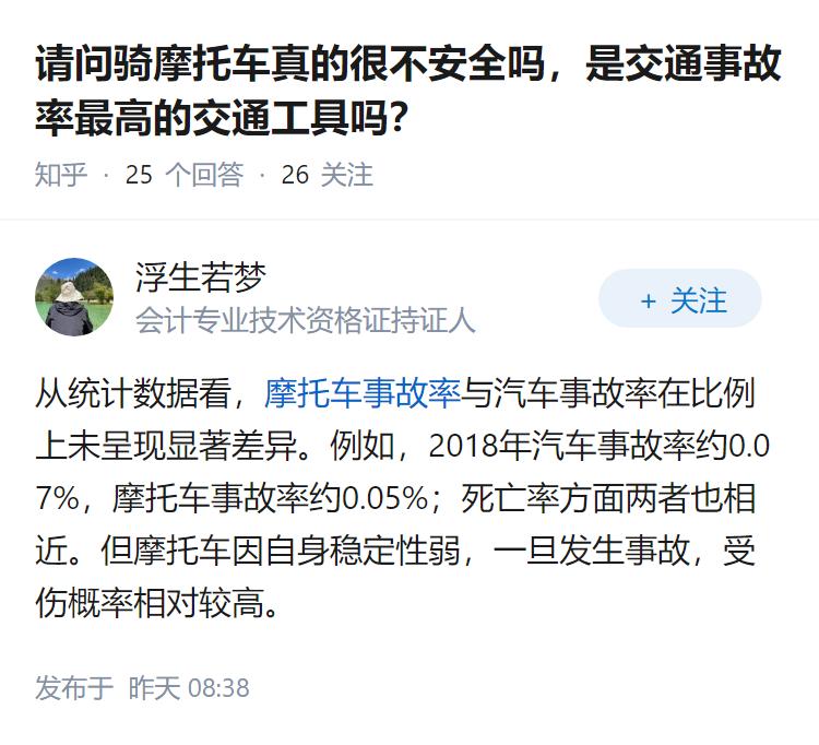 请问骑摩托车真的很不安全吗,是交通事故率最高的交通工具吗?