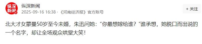 [浮云]北大才女蒙曼50岁至今未婚,朱迅问她:“你最想嫁给谁?”谁承想,她脱口而