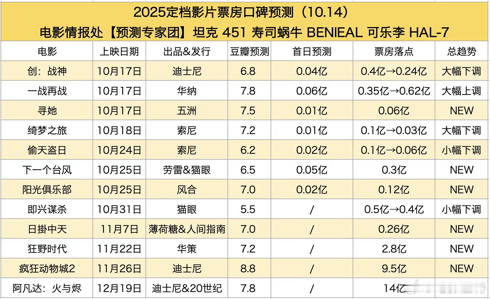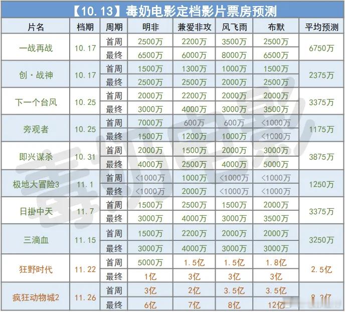 听听温特怎么说 毒奶和情报处的预测,到11约中旬都难有电影过亿,每天工作日票房怎么看两三千万左右。[苦涩][苦涩]