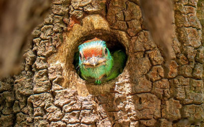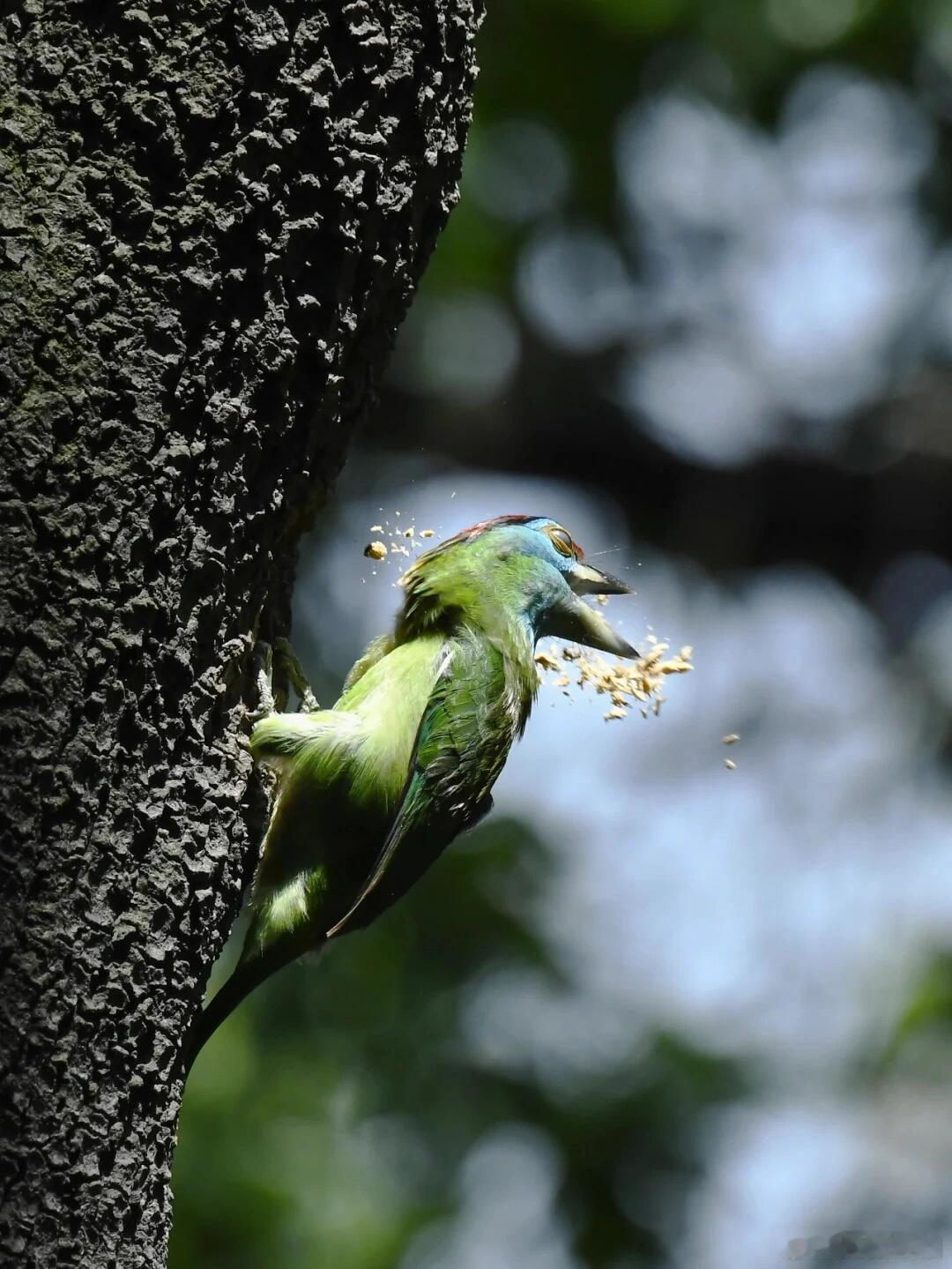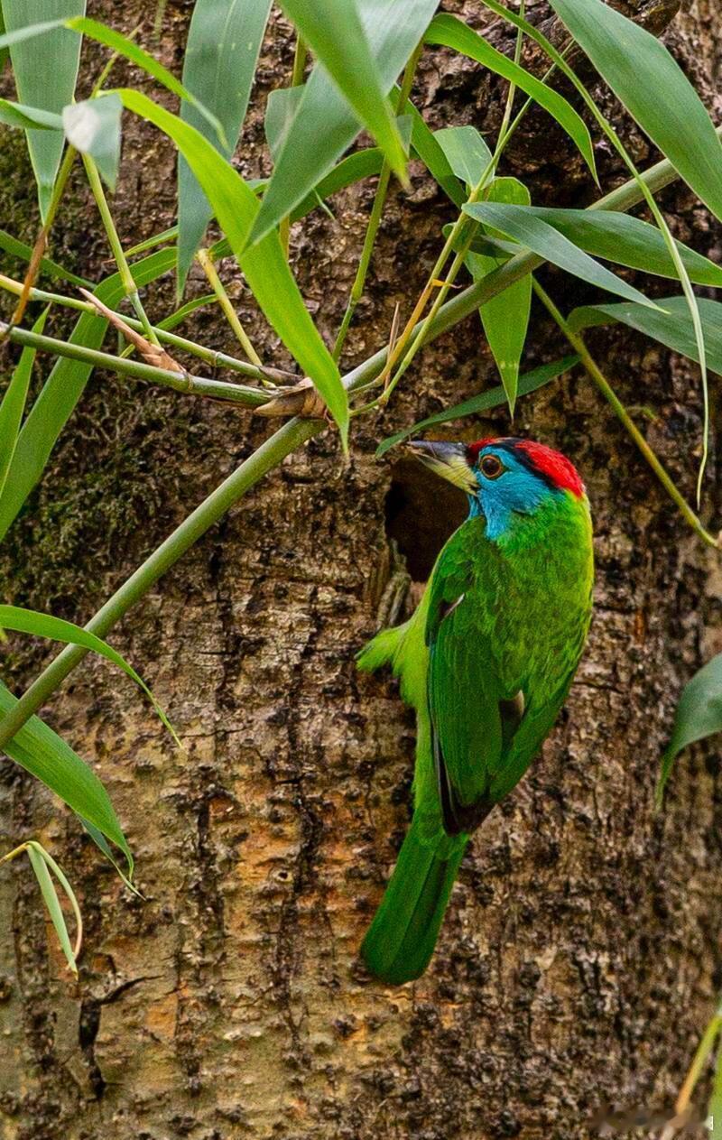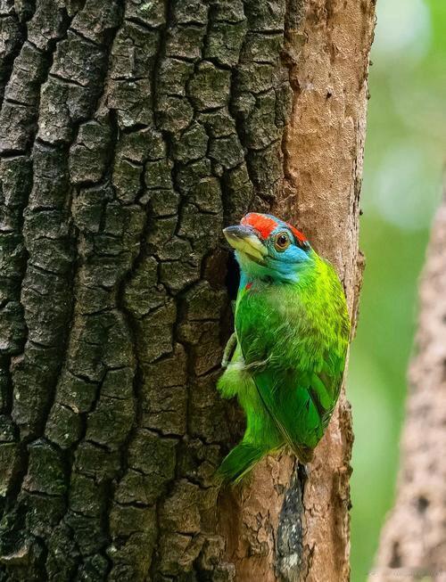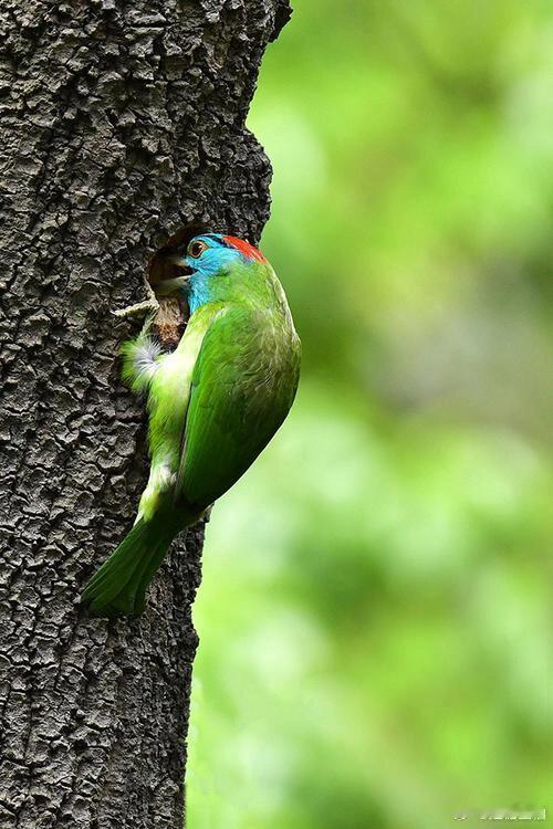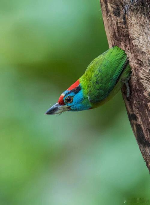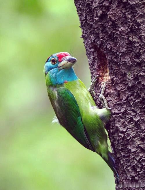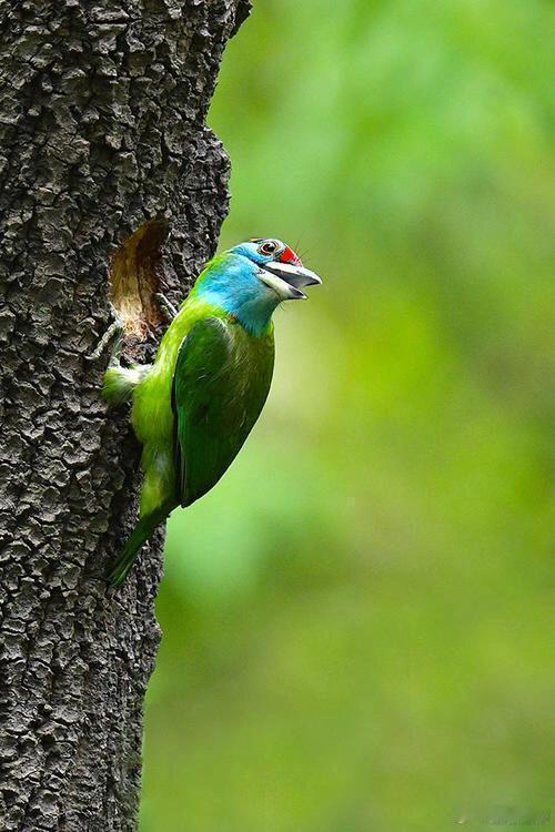 是啄木鸟家族里的“颜值担当”,色彩斑斓的羽毛在林间格外醒目,虽以植物性食物为主,却也保留了啄木鸟凿树的习性,是山林里的“彩色精灵”~动物奇遇记