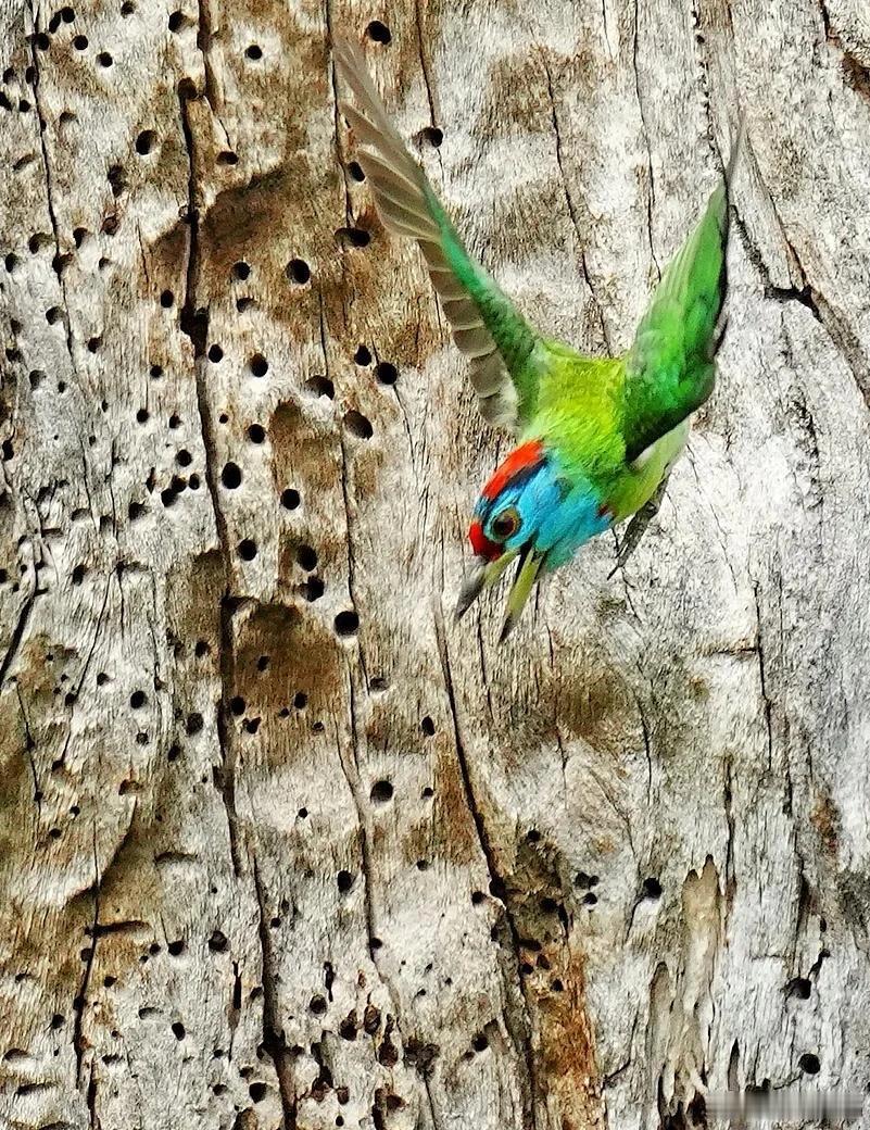 ☘️别名:无特定别名,因颜值出众被称为“啄木鸟界的彩鸟”