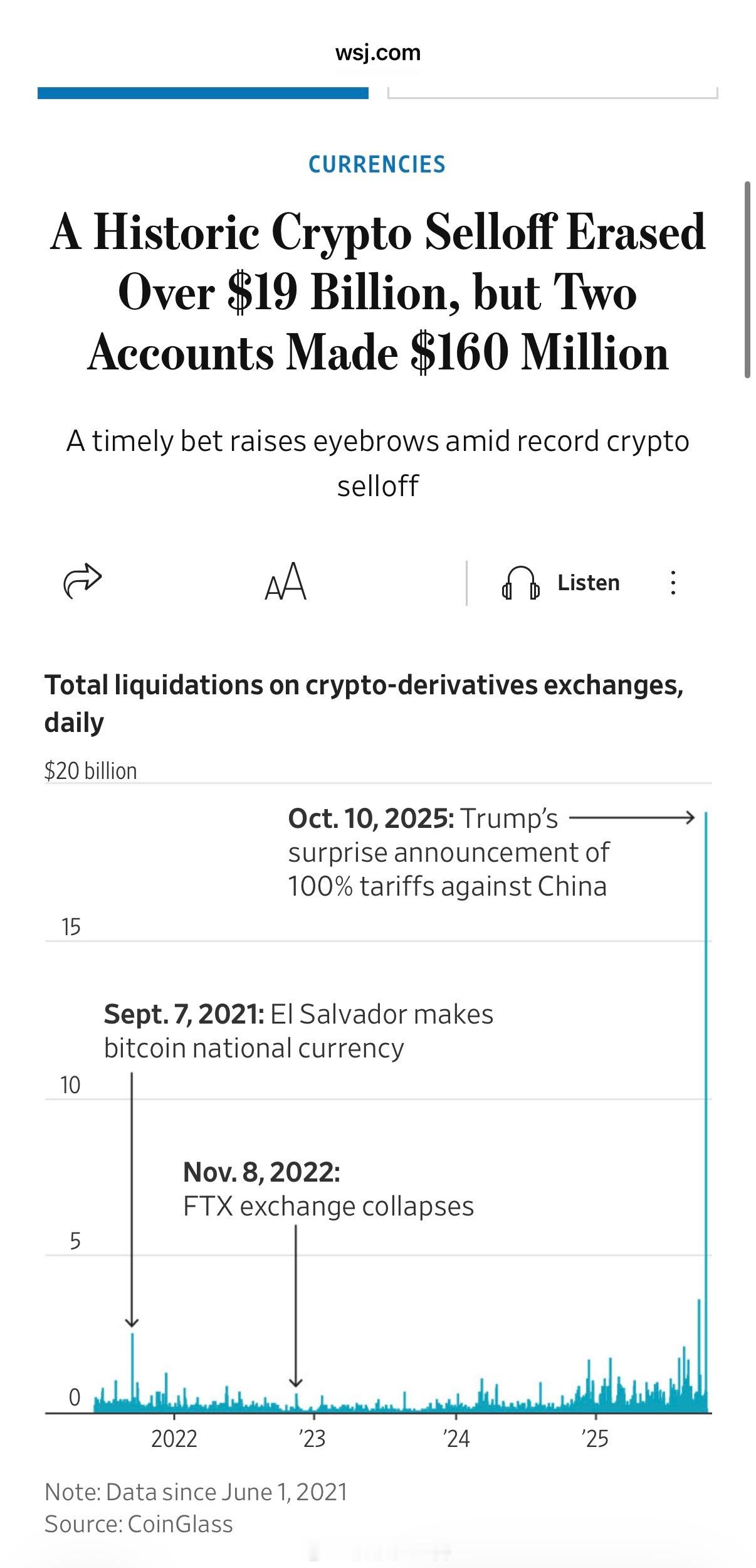《华尔街日报》:两个神秘账户提前做空加密货币,获利1.6亿美元