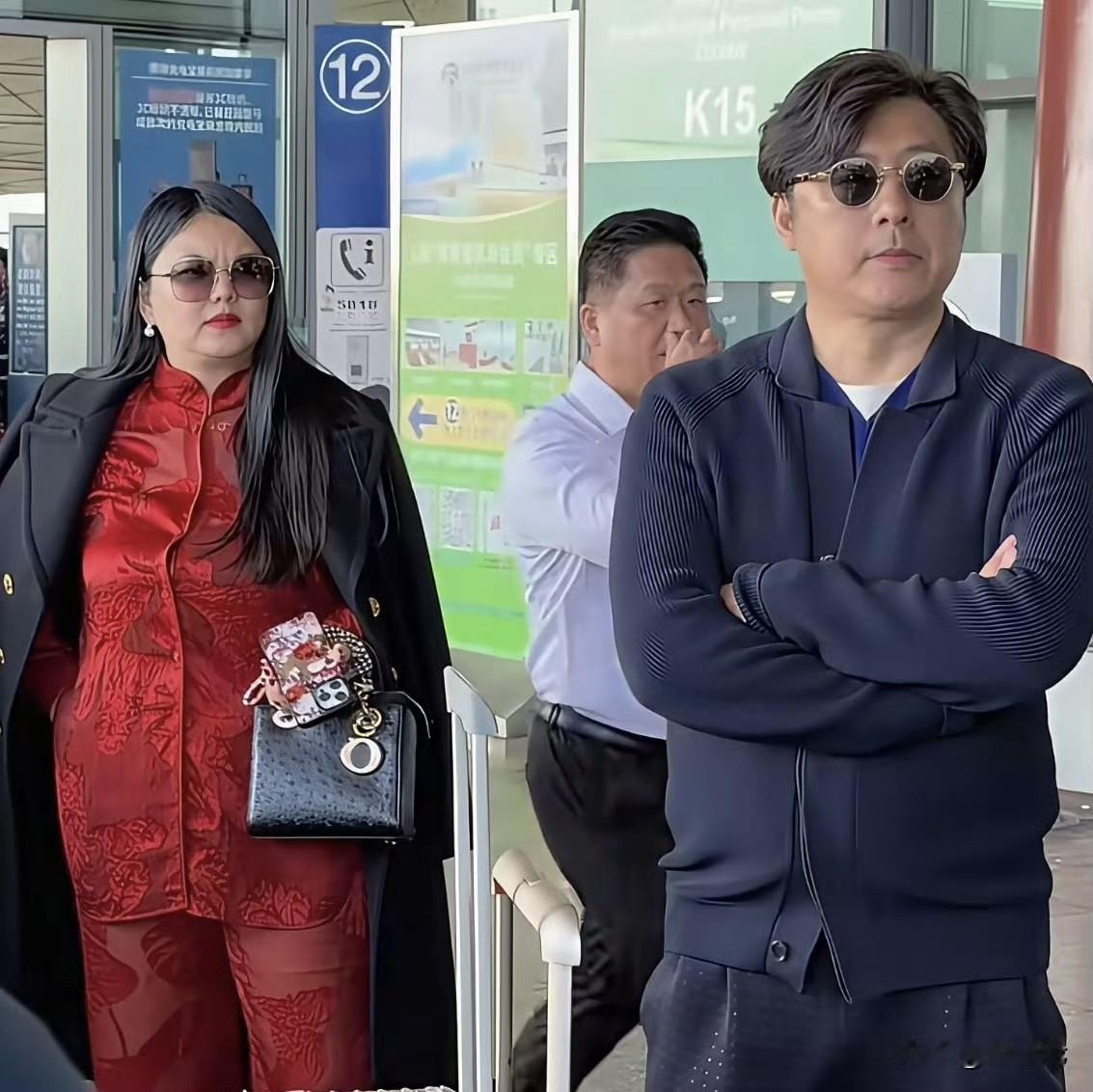 59岁李湘与前夫合体现身机场‼️180斤体型成“承重墙”,前夫竟成最瘦担当。 李