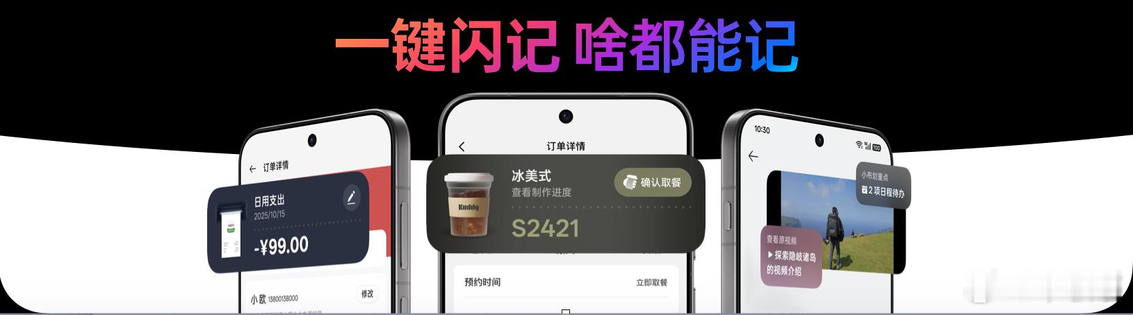 这次断代领先的「一键闪记」又迎来超大幅度升级,变的更懂你!复杂图文简单记、超长视频智能记、闪现灵感随口记,能记更多内容,赋能轻松体验;