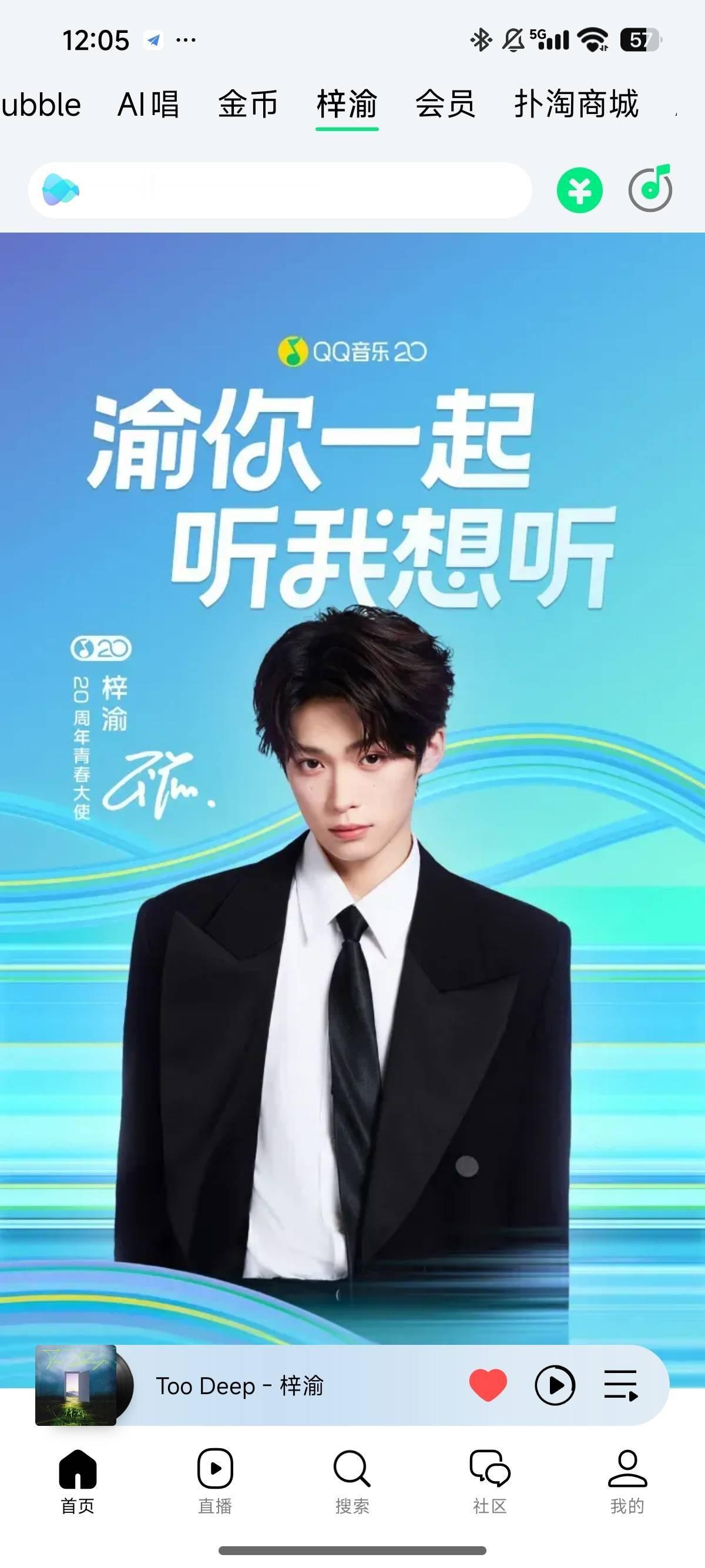 梓渝q音全线合作20周年的青春大使,网易云那边也要争取梓渝的版权了
