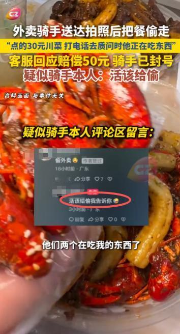 “太缺德了!”10月13日,广东,一外卖小哥把餐送达拍照后又反手偷走,顾客给外卖小哥打去电话质问时发现他嘴里正在吃东西,事后疑似外卖小哥的男子称“活该被偷”,网友:这人也太缺德了! 偷外卖的“外卖贼”十分可恶,但相比之下,个别外卖员监守自盗的行为则更加恶劣,这种人可以说是毫无底线。 一外卖小哥将顾客的餐食送到门口,用手机拍照点击已送达,随后他竟然反手又把餐给偷走了,这一切都被楼道的监控摄像头记录了下来,外卖小哥整套操作“行云流水”,看起来不像是第一次干这种事。 顾客开门时没有看到自己的外卖,怀疑是被外卖员拿走,于是便打电话质问,外卖小哥接电话时嘴里正在吃着东西,他死不承认是自己拿的外卖。 无奈之下,顾客查看了楼道的监控,证实了自己的想法,随后反映给了平台,平台将骑手的账号封禁,并赔偿了顾客50元。 事后顾客将这件事分享到了网上,评论区竟然出现了一位疑似外卖小哥的男子称顾客“活该被偷”,不少网友谴责他的行为,男子回应“终于有一天当上了网红”、“你们越黑我就越火”。 此男子的身份还未经证实,如果真是偷外卖的那名外卖小哥,说出的话未免也太嚣张了,他丝毫没有认识到自己的错误,这种人必须严惩! 信息来源:《外卖骑手送达拍照后把餐偷走,“点的30元川菜 打电话去质问时他正在吃东西”,客服回应骑手已封号,疑似骑手本人:活该给偷。》广州广播电视台