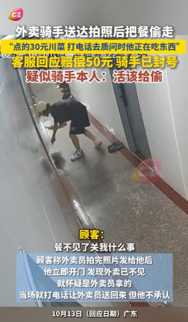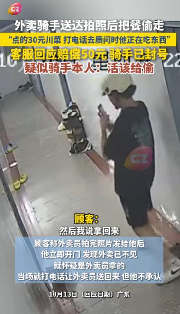 “太缺德了!”10月13日,广东,一外卖小哥把餐送达拍照后又反手偷走,顾客给外卖
