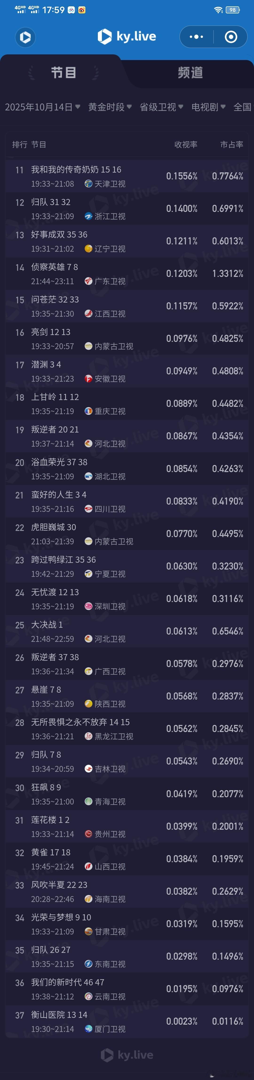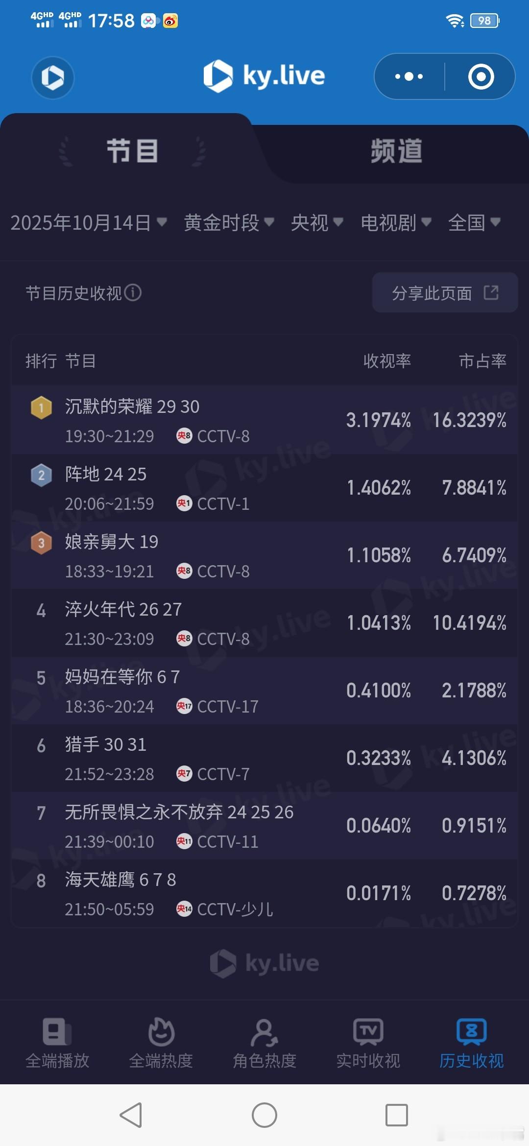 于和伟的表演以克制见力量10月14日cvb收视日报