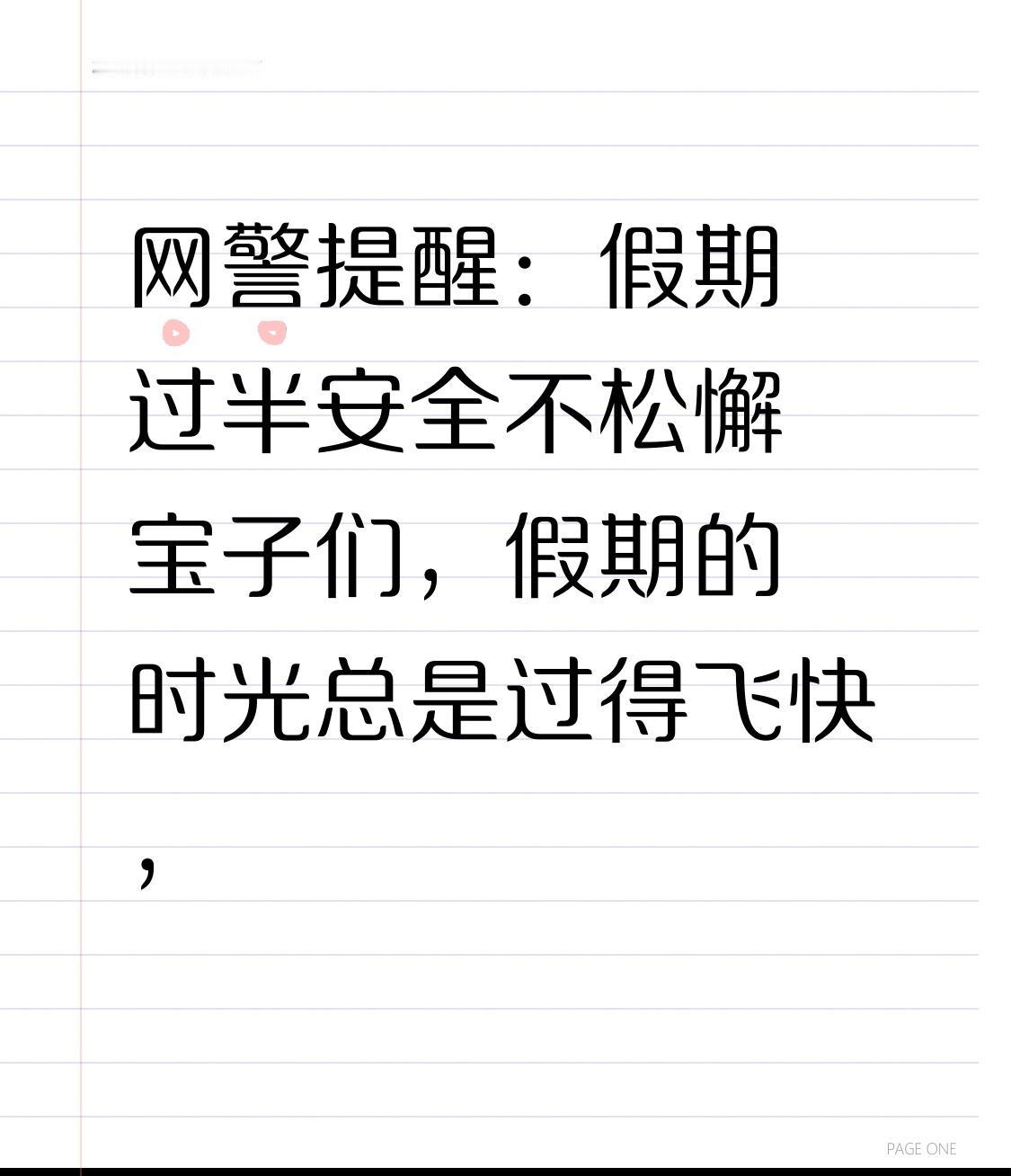 网警提醒:假期过半安全不松懈 宝子们,假期的时光总是过得飞快,转眼间假期已经过