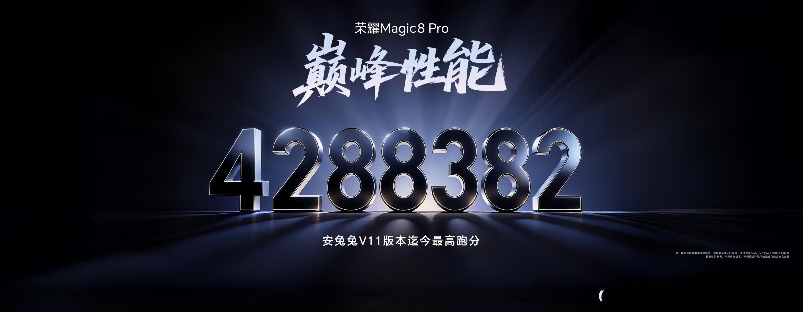 荣耀Magic8系列全系搭载第五代骁龙8至尊版移动平台,性能全面飙升!在荣耀与高通的深度联合调校下,常温实测跑分高达428万。