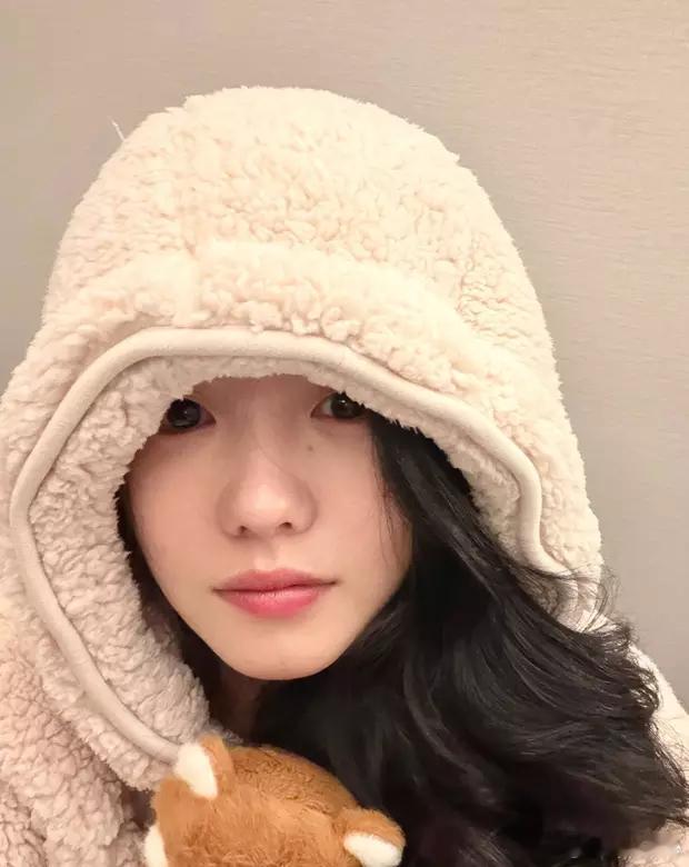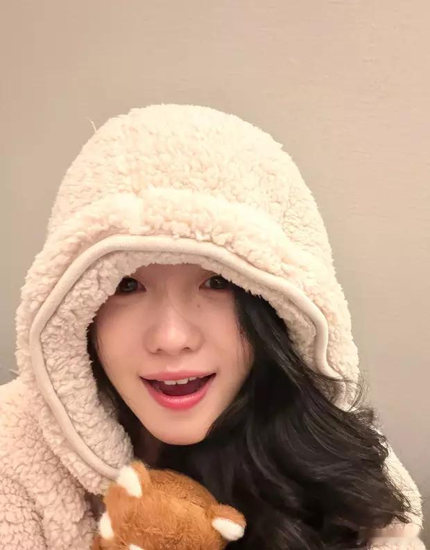 分享娱乐[超话]分享娱乐刘浩存戴毛绒帽子嘟嘴卖萌抱着玩偶温柔可爱