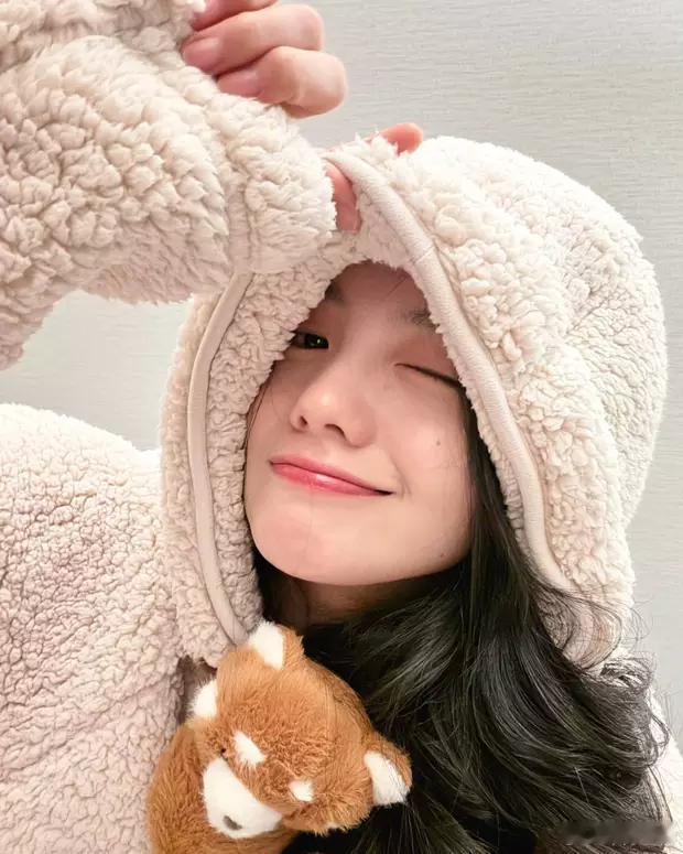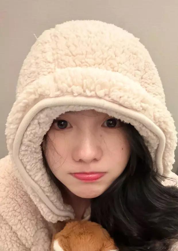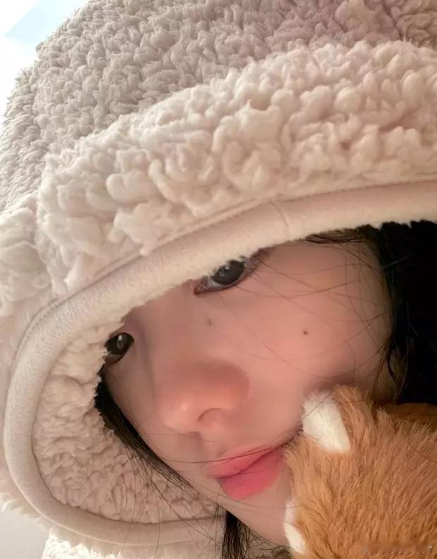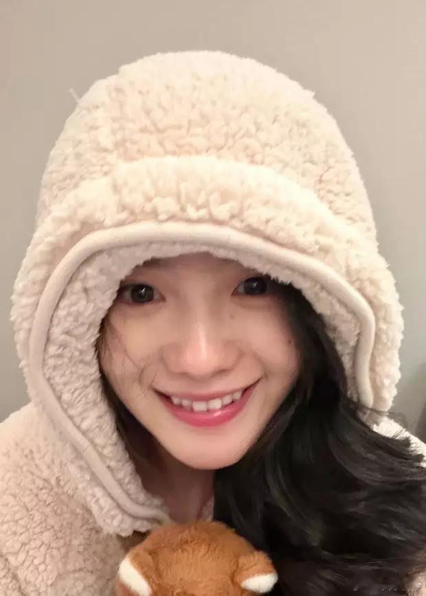 分享娱乐[超话]分享娱乐 刘浩存戴毛绒帽子嘟嘴卖萌 抱着玩偶温柔可爱