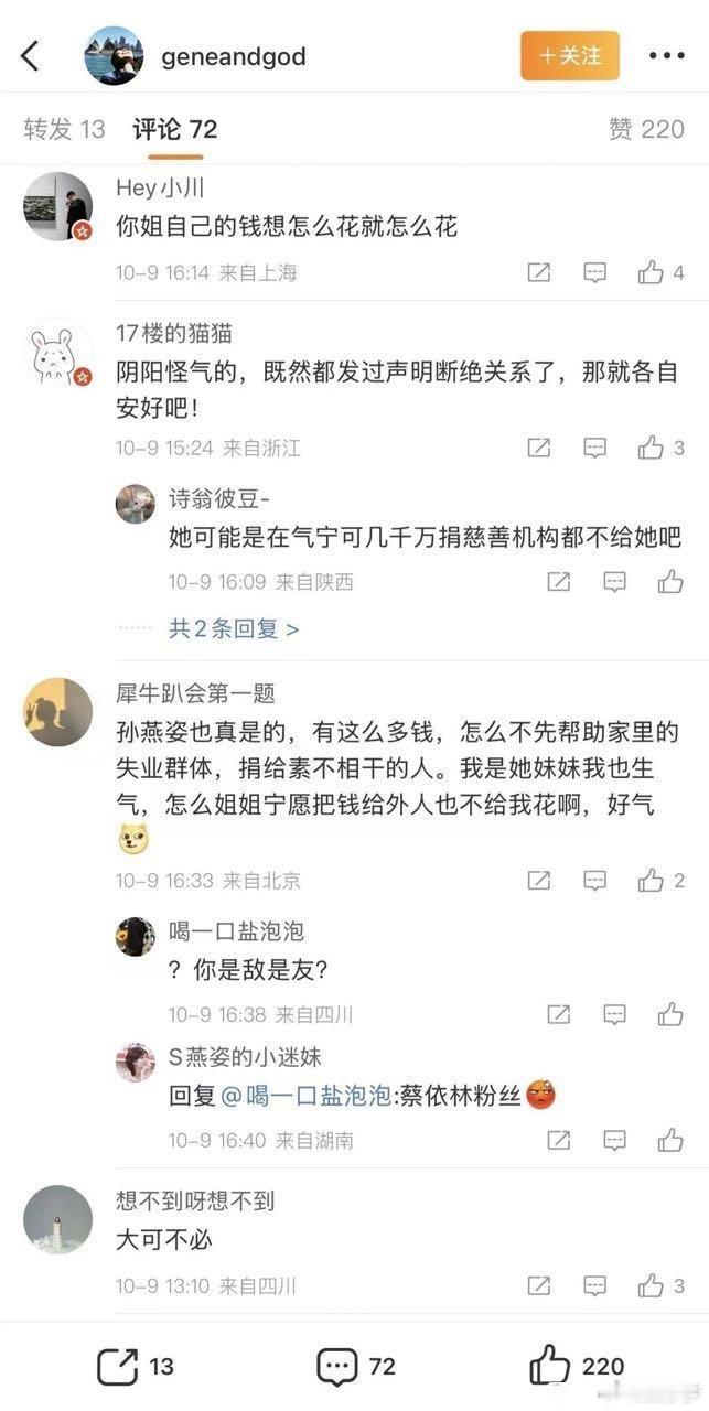 孙燕姿妹妹孙燕美发微博感谢了韩红基金会捐款的人,但是没提孙燕姿,什么情况?​​