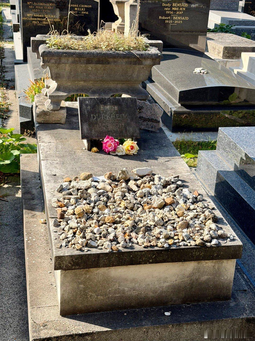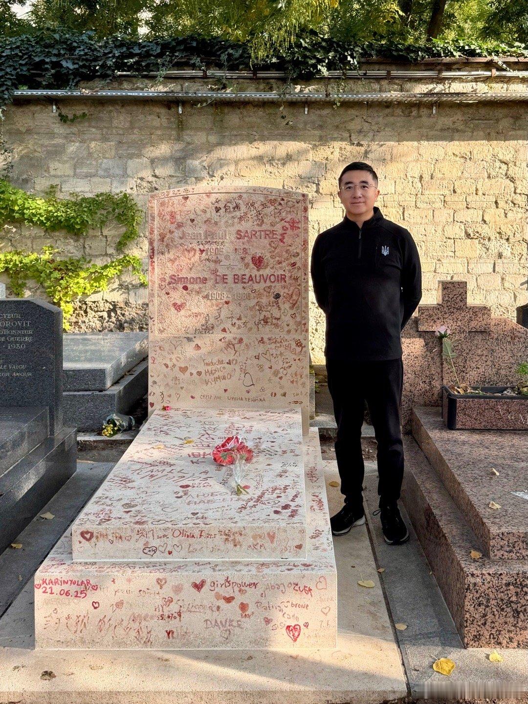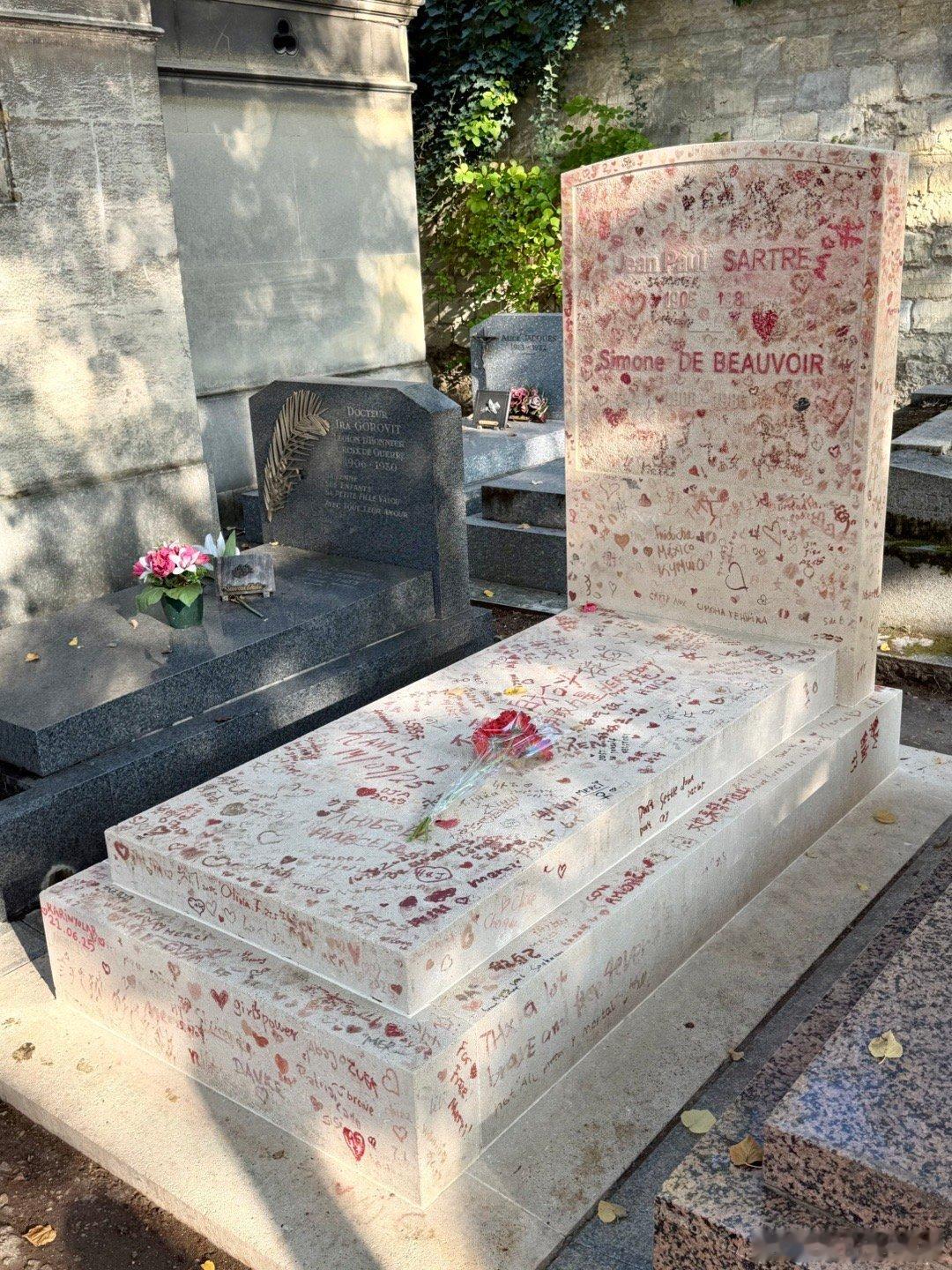参观巴黎的蒙巴纳斯公墓,这个公墓建于1824年,里面埋葬了很多世界级的名人。图1是最著名的一座:存在主义哲学家萨特(1905-1980)和波伏娃(1908-1986)之墓,被亲的都不行了。