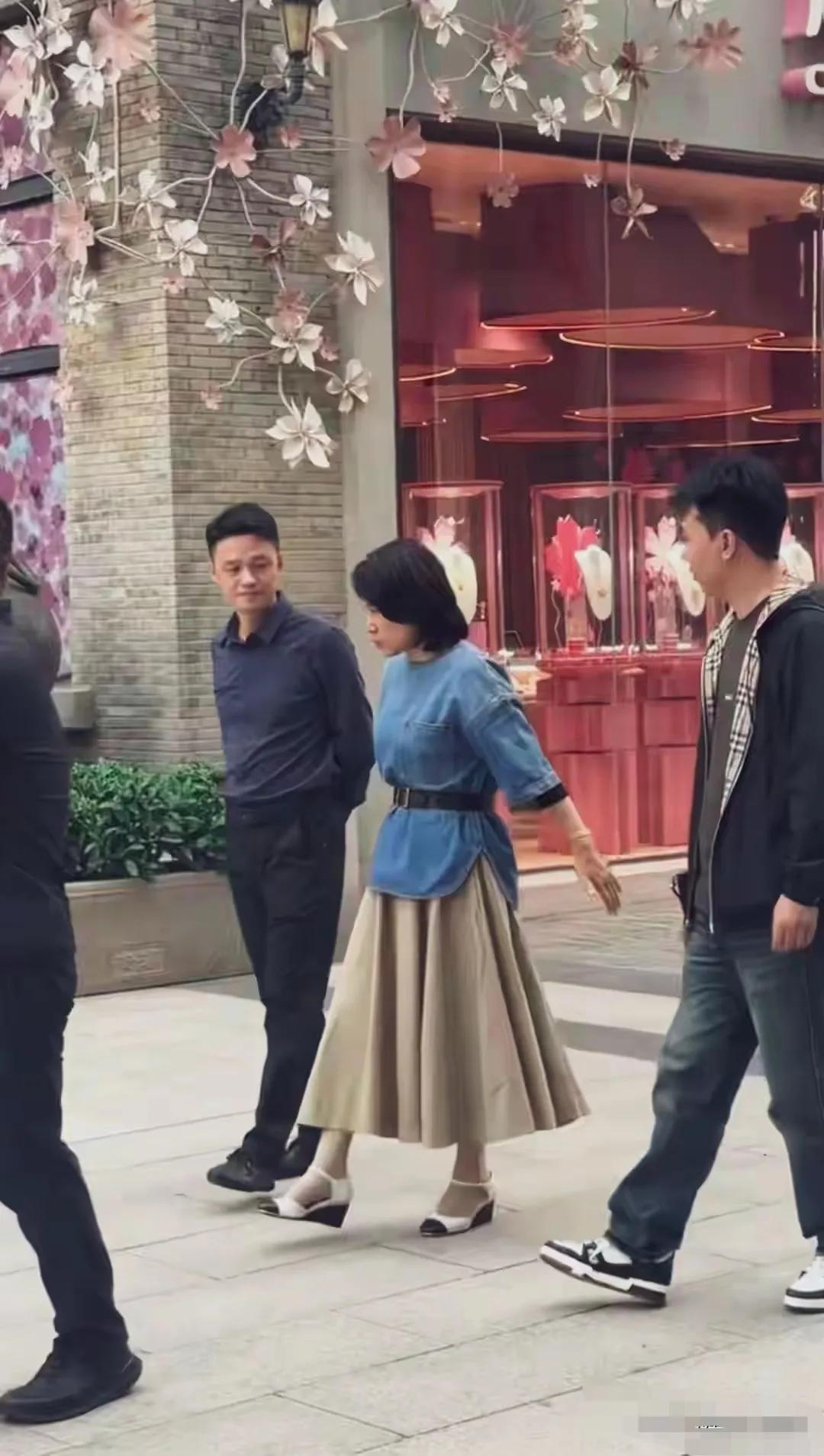 著名女企业家董明珠在武汉逛街,她的打扮时尚,外表看起来好年轻,个子挺矮小的,颜值
