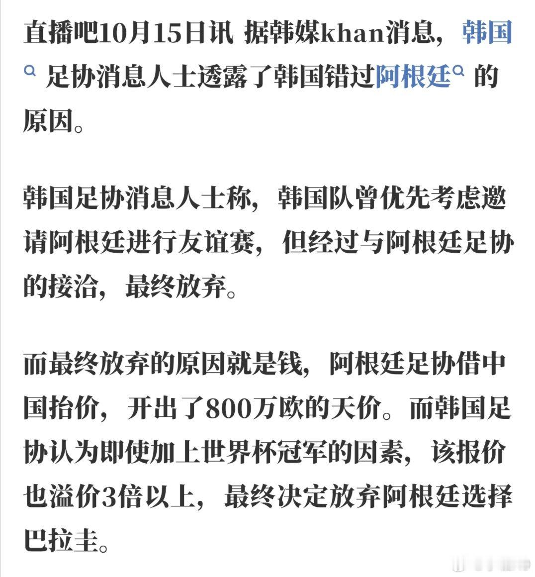 请用两个词形容此新闻中的韩国足协和阿根廷足协。[允悲][允悲][允悲]