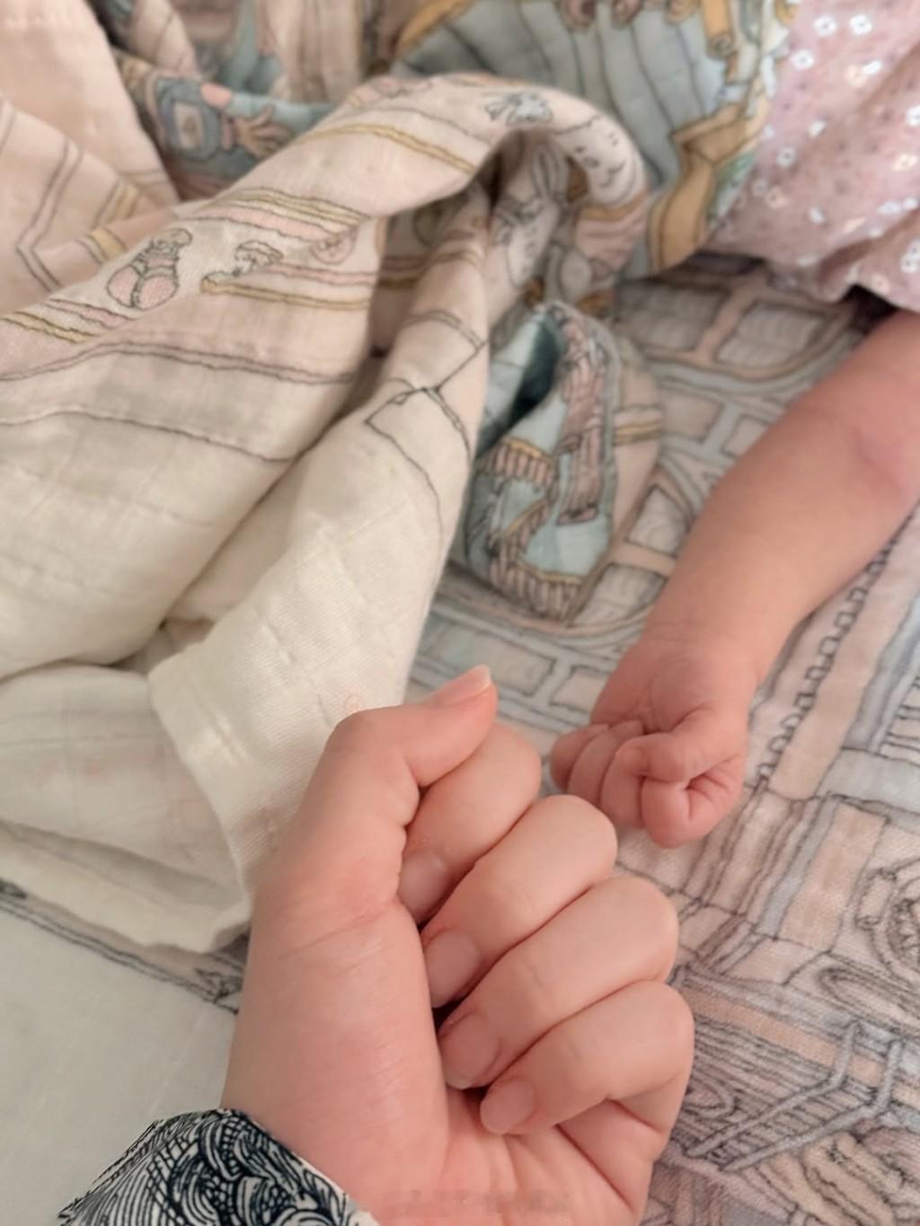 曾晓婷初为人母感动表示:“When two becomes three,经历了38周小心翼翼的等待,终于你自己挑了日子出生。原本不想经历阵痛的我,最终还是体验了。记得护士把小小的你抱到我身边,第一次你睁开眼睛看着妈妈时,不知怎的我的泪水就流下来,原来所有的痛楚和不适也很值得。”