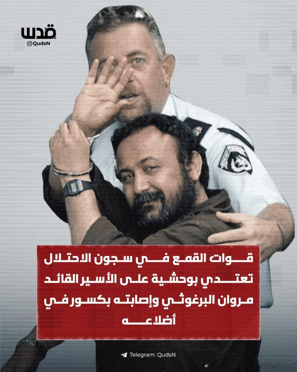 🚨突发消息|以色列监狱的镇压部队残暴袭击了被关押的巴勒斯坦领袖马尔万·巴尔古提,导致他肋骨骨折。