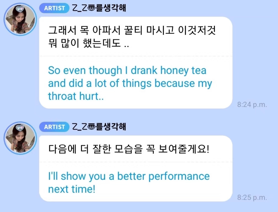 来纽约之前,我和声乐老师一起热身开了嗓的,但到纽约之后,喉咙就渐渐变差了.. 彩排时声音还好,但正式表演时严重起来,喉咙里堵着痰,发不出声音了,所以喉咙痛,喝了柚子茶也试了各种方法...
