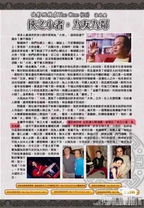 金庸:侠之大者,为国为民温瑞安:侠之小者,为友为邻拍着温的戏,套用金的话……