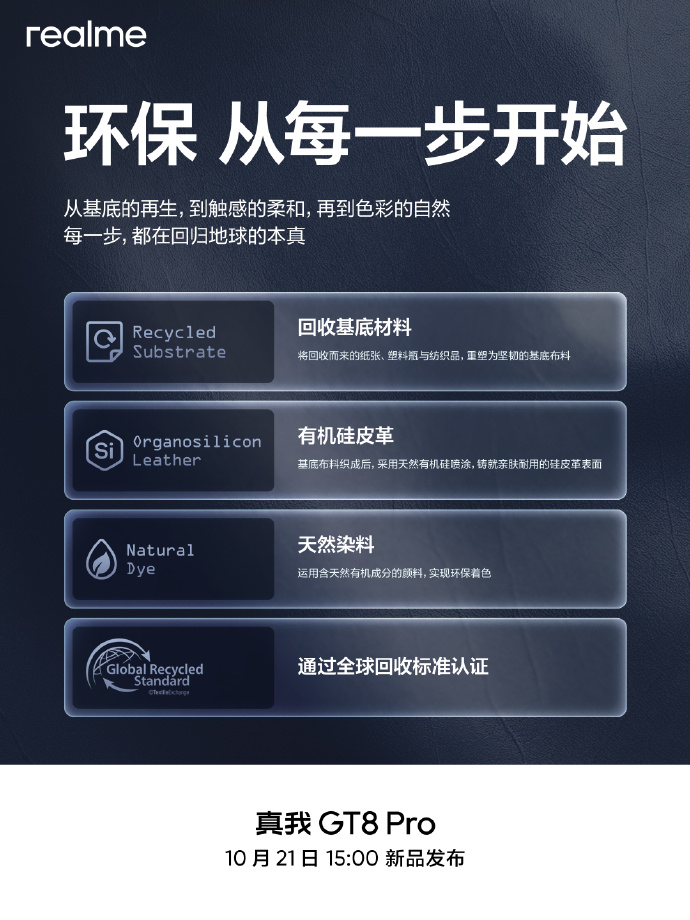 真我GT8Pro这次的背板材质居然是类纸再生皮革[震惊]好惊喜!独一无二的类纸纹理,每台都是独特的。10月21日15:00,真我GT8 系列新品发布