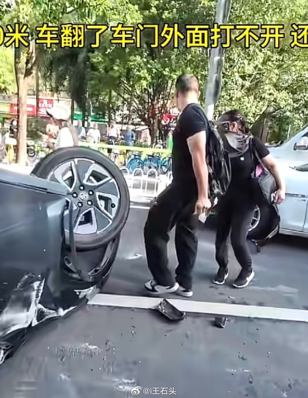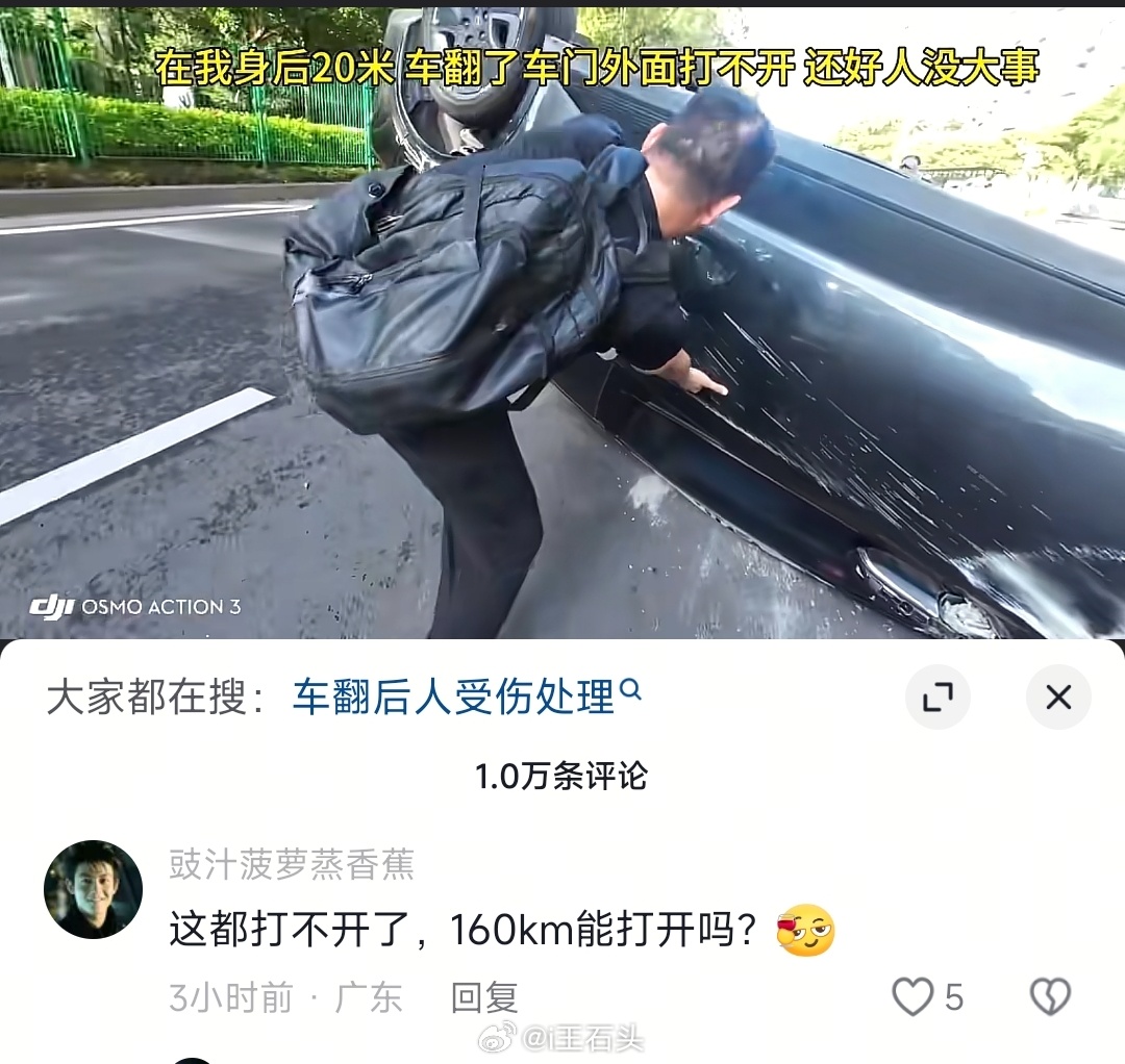 丰田车翻了门打不开,小米车时速160撞了,门必须能打开。如果这辆丰田换成小米会咋样?