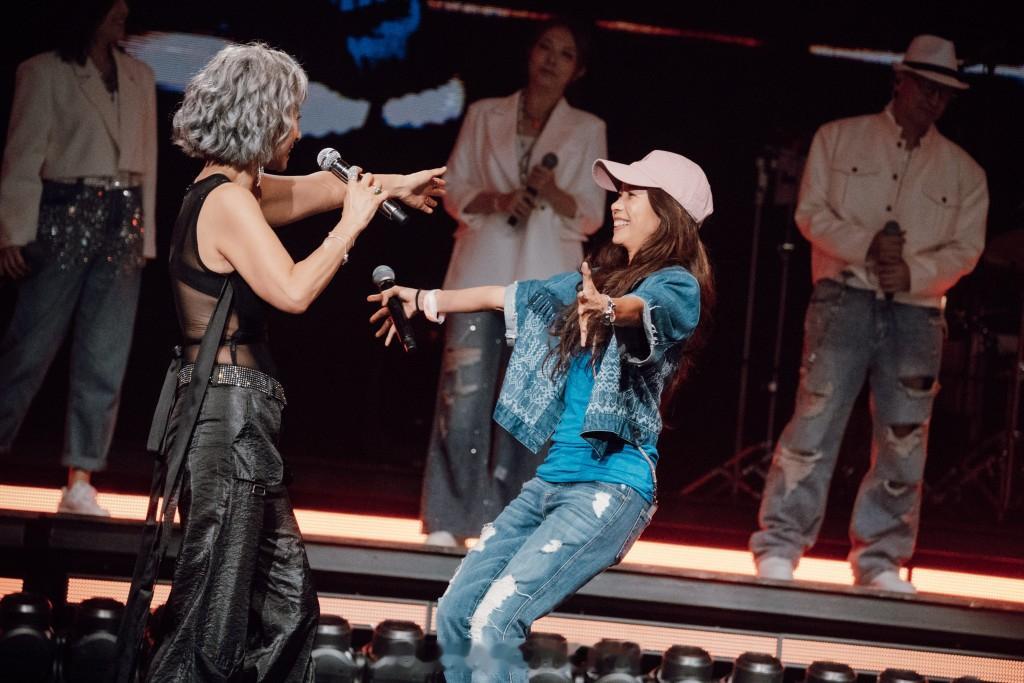 去到encore部分,经典歌曲《敢爱敢做》前奏一响,Sally即说:“Wait a minute,我们就有些friends要同我们唱这首歌,we have some surprise!”阿Lam儿子林德信及女儿林德懿、来看show的杨千嬅、莫文蔚同黄博全部上台,变成超级大合唱,整个红馆变成大型K房,气氛热烈到不得了!阿Lam及Sally五场唱跳足全场,完全不留力,尾场更加将所有能量一次过爆发,令观众不停赞叹。