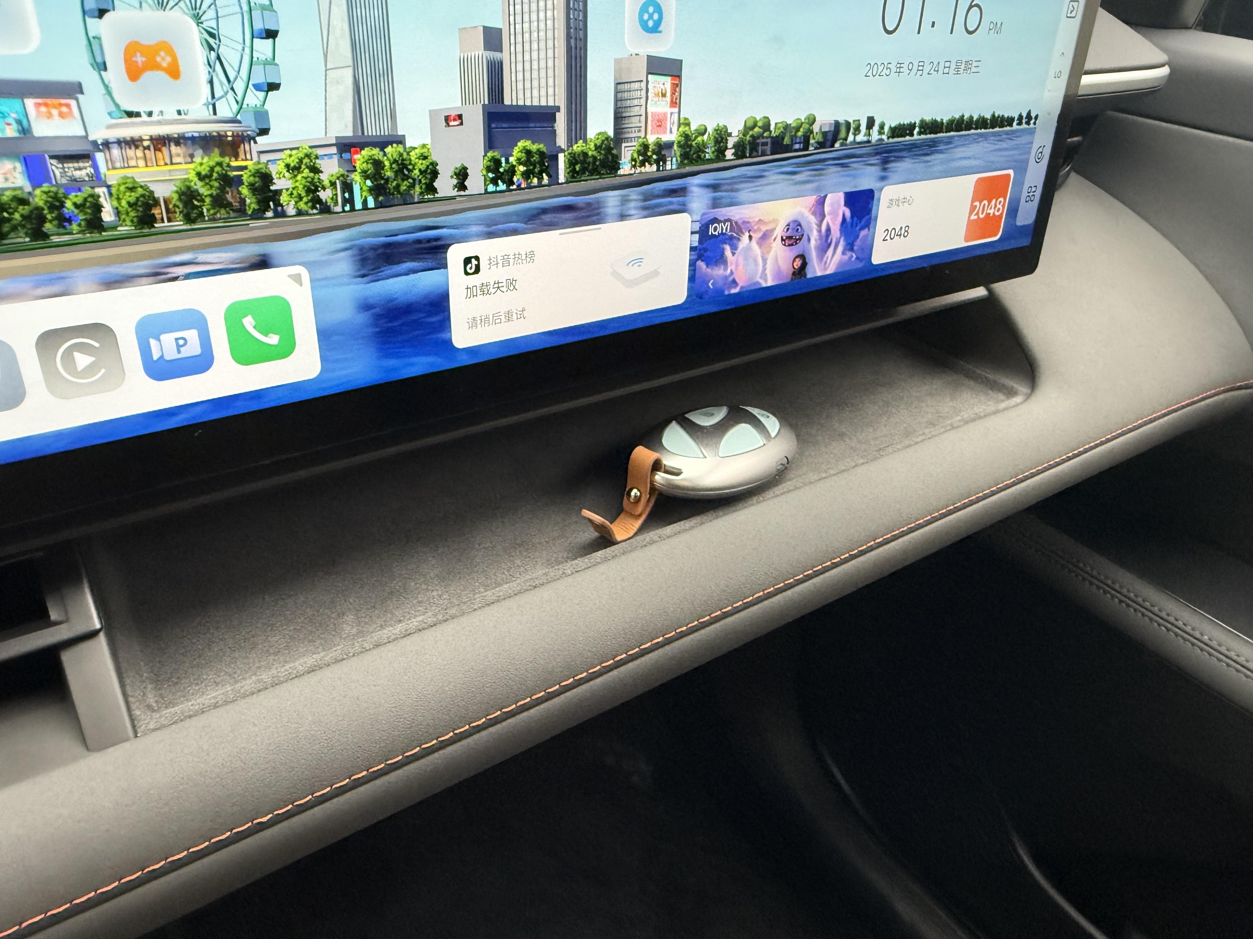 6、两个15W无线充电面板,支持双无线充电,这样主副驾驶不用再为1个充电位置争吵了,有助于家庭和谐。另外作为一款纯电车型,其方向盘后侧也设计了两个换挡拨片,其功能是切换 4挡动能回收。长按左拨片打开单踏板模式,长按右拨片切换自动模式;