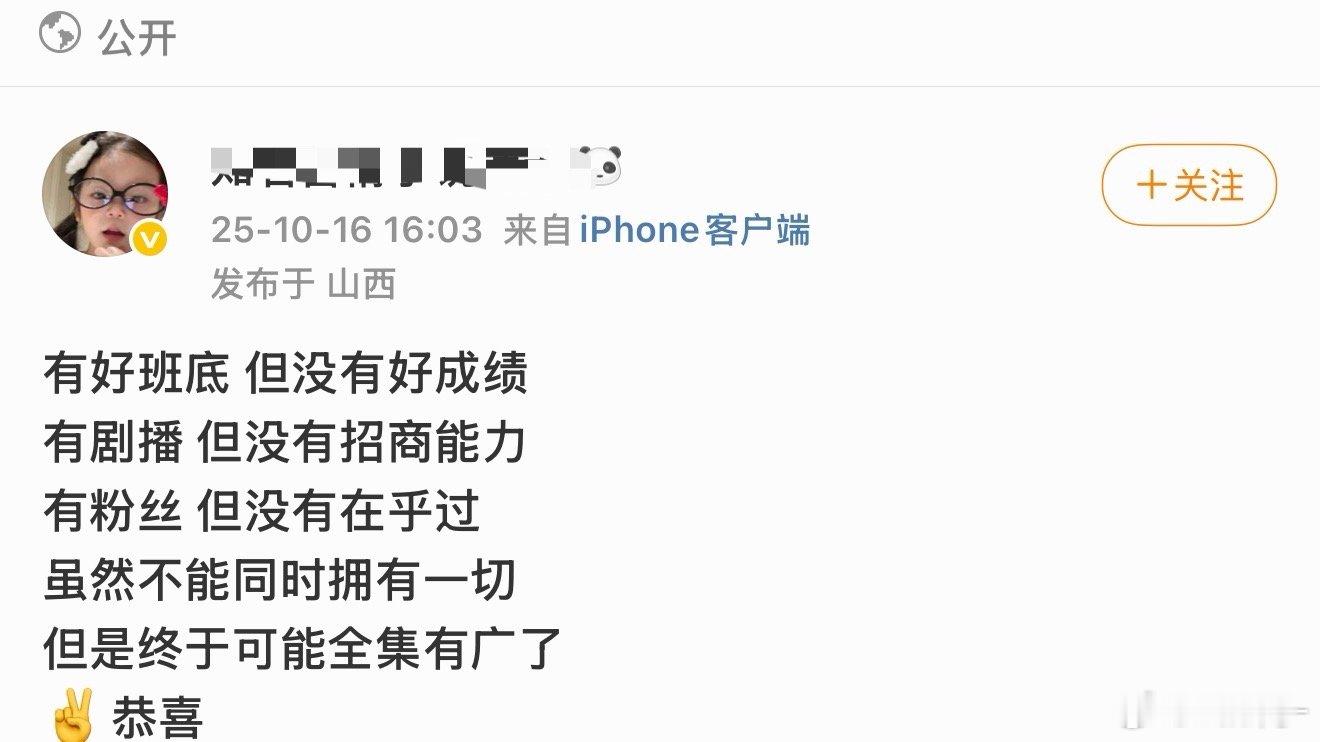杨紫粉丝天天对着别人说拍短剧,是忘记自己姐姐之前大扑的贺顿小可乐了吗?扑了就可以当作没拍过了吗?还有拿着大营销大厂大班底的古偶剧播出2000出头的集均播出倒数的收视,可能放眼内娱也没几个能做到的了