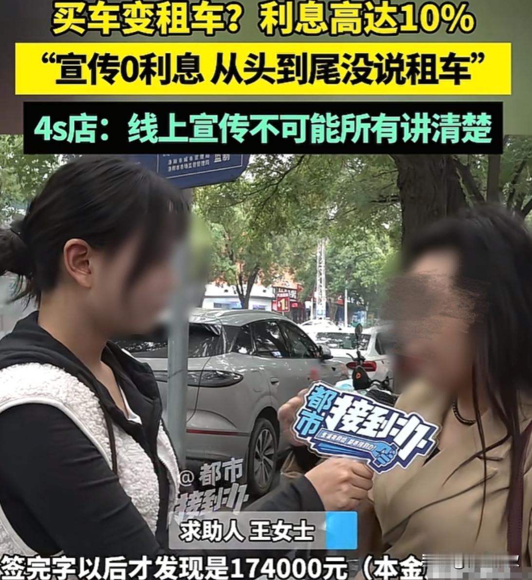 河南洛阳,女子带孩子去买车,跟4s店谈好,车辆总价138000元,不用首付,零利息。可女子孩子签完字后,这才发现他们以为的贷款买车变成了融资租赁,5年以内他们对车辆只有使用权,没有所有权,车子不是他们的,并且连本带息要还174000元,利息10%。女子觉得对方宣传的0息,纯粹是在诱导他们。销售经理却说:客户只有几千块钱,就想把车提走,他只要求0首付,月供4000以内,我是按照这个诉求来的。 咱河南洛阳,前段时间出了档让王女士一家子糟心透顶的事,她带着刚工作两年的孩子去 4S 店买车,本来想着给孩子添辆代步车,方便上班通勤,结果好好的购车交易,最后愣是变成了个甩不掉的大坑。 王女士家孩子刚参加工作没两年,手里没多少积蓄,平时上班挤公交得绕远路,娘俩就合计着去汽车城挑辆性价比高点的车,转悠了几家 4S 店,最后看中了一款紧凑型轿车,店里标价 13 万 8,不算贵,刚好在她们能接受的预算范围里。 当时接待她们的销售特别热情,一听说孩子没多少存款,立马就推荐起店里的 “优惠方案”,“这款车现在能做零首付,而且五年零利息,不用您先掏一分钱就能把车开走,以后每个月按时还点钱就行,压力特别小。” 这话可说到娘俩心坎里了,孩子没积蓄零首付能减轻不少负担,再加上 “零利息”,算下来每个月还款额应该也不高,俩人当场就动了心。 王女士和孩子也没多想,觉得 4S 店是正规门店,总不能搞猫腻当时销售拿着一叠文件过来,催着说 “签完字就能办手续提车”,娘俩急匆匆扫了几眼合同上的关键信息,没仔细看那些密密麻麻的条款,就跟着销售的指引签了字、按了手印,满心欢喜地等着提车。 结果签完合同没两天,王女士帮孩子整理还款资料时,越算越觉得不对劲,按照销售给的还款计划表,每个月要还 2900 块,还五年的话,总金额得有 17 万 4,比当初说的车价 13 万 8 整整多了 3 万 6!她赶紧拿着计划表去 4S 店问咋回事,这一问心直接凉了半截。 原来她们签的根本不是普通的汽车贷款合同,而是 “融资租赁” 合同。销售这时候才支支吾吾解释:“这融资租赁跟贷款不一样,五年之内车的所有权不算你们的,你们只有使用权想开车没问题,但不能转卖也不能过户,得等五年把 17 万 4 全还完了,咱们再办所有权转移手续。” 王女士一听就急了当场算下来,多出来的 3 万 6 其实就是利息,折算一下年利率快 10% 了,这跟当初宣传的 “零利息” 完全是两码事! 而且从头到尾,销售就没提过 “融资租赁”,也没说过五年内没有车辆所有权,只一个劲儿强调 “零首付、零息”,这不就是明摆着诱导人嘛。 她气冲冲找到销售经理要说法,可对方却挺 “理直气壮”,“您家孩子当时自己说的,手里就几千块钱,就想把车提走,明确要求要零首付,月供还不能超过 4000 块,我这都是按照你们的诉求找的最优方案没毛病啊。” 这话让王女士更委屈了,当初要是知道是融资租赁,知道五年内车不算自己的,知道总还款额要多 3 万 6,说啥也不会签这个合同,孩子刚工作本来想省点钱,结果掉进这么个坑里,现在要么咬牙还五年 17 万 4,才能真正拿到车,要么就得付高额违约金解约,可刚签完合同哪有那么多钱付违约金? 好好的一件买车高兴事,愣是变成了进退两难的烦心事,王女士现在悔得不行,总说当初该仔细看看合同条款,也不该轻信销售嘴里的 “零息” 宣传,可事到如今再多后悔也没用,只能跟 4S 店反复协商,希望能找到个稍微合理点的解决办法。 (信息来源:都市报道——10月11日,河南,洛阳,买车变租车?利息高达10%,“宣传0利息 从头到尾没说租车”4s店:线上宣传不可能所有讲清楚)