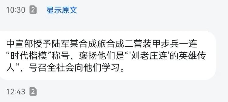 突然收到手机短信,10月16日,中宣部授予的陆军某合成旅合成二营一连“时代楷模”