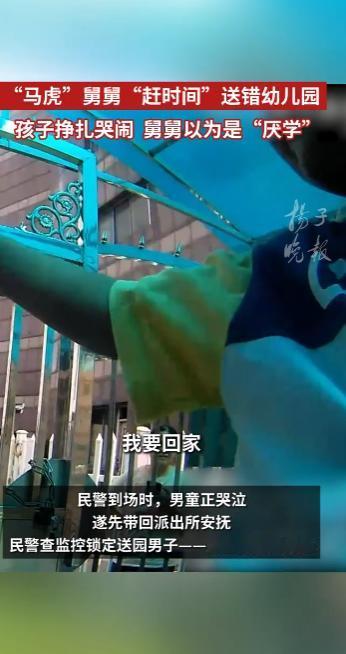 “太尴尬了!”2025年10月,江苏苏州,一粗心舅舅因赶时间把3岁男童送错幼儿园,男童不断挣扎哭闹,舅舅以为他是“厌学”也就没管,直到警察找上门来,舅舅才恍然大悟,网友:家长心也太大了! 很多孩子刚上幼儿园时都会哭闹,不习惯与爸爸妈妈分开,很多家长习以为常,可要是孩子哭闹成程度比较异常,那就得检查一下有没有送错幼儿园了。 一3岁男童的父母有事,于是拜托孩子舅舅帮忙送去幼儿园,舅舅平时很少接送,凭借着自己的记忆将孩子送到了幼儿园,谁知孩子刚来就开始不断挣扎哭闹。 舅舅误以为是外甥不想上学,因为孩子刚上幼儿园小班没多久,之前就出现了哭闹的情况,他也没放在心上,再加上自己上班赶时间,舅舅将孩子放下后径直离去。 幼儿园老师发现孩子比较面生,便询问他的家庭信息和父母电话,由于孩子的年纪比较小,情绪又比较激动,说话模模糊糊老师也听不太懂,无奈之下只好报了警。 警察先将孩子带回了派出所,又通过幼儿园监控锁定了孩子的舅舅,直到警察打来电话,粗心的舅舅才得知自己把外甥送错幼儿园了。 不少网友表示孩子家长们心是真大,幸好孩子没什么大碍,家长们在接送孩子时要看好幼儿园名字,尤其是让身边的亲友接送时,一定要嘱咐到位,别再闹出这种乌龙! 信息来源:《“马虎”舅舅“赶时间”送错幼儿园, 孩子挣扎哭闹 舅舅以为是“厌学”》扬子晚报