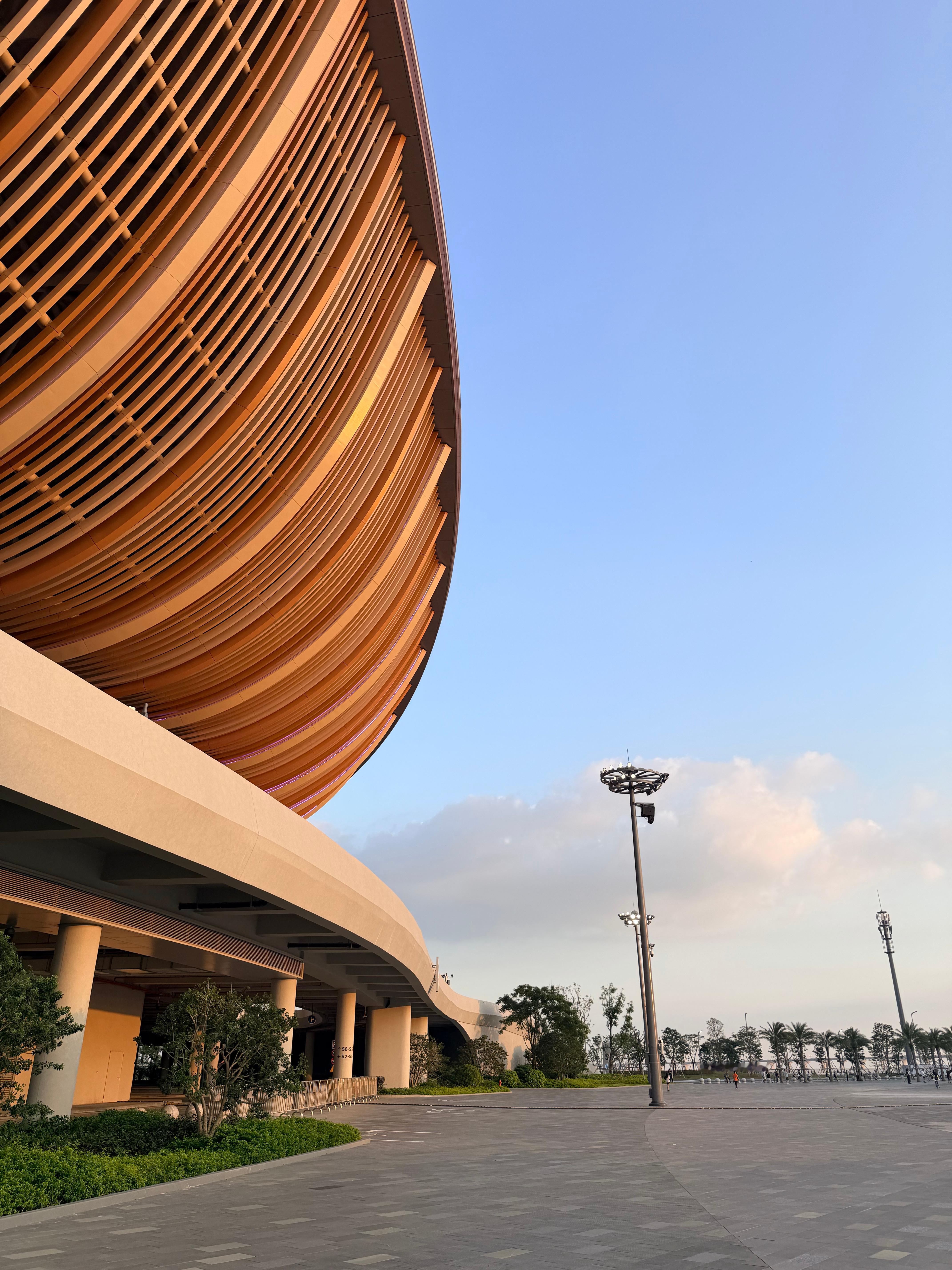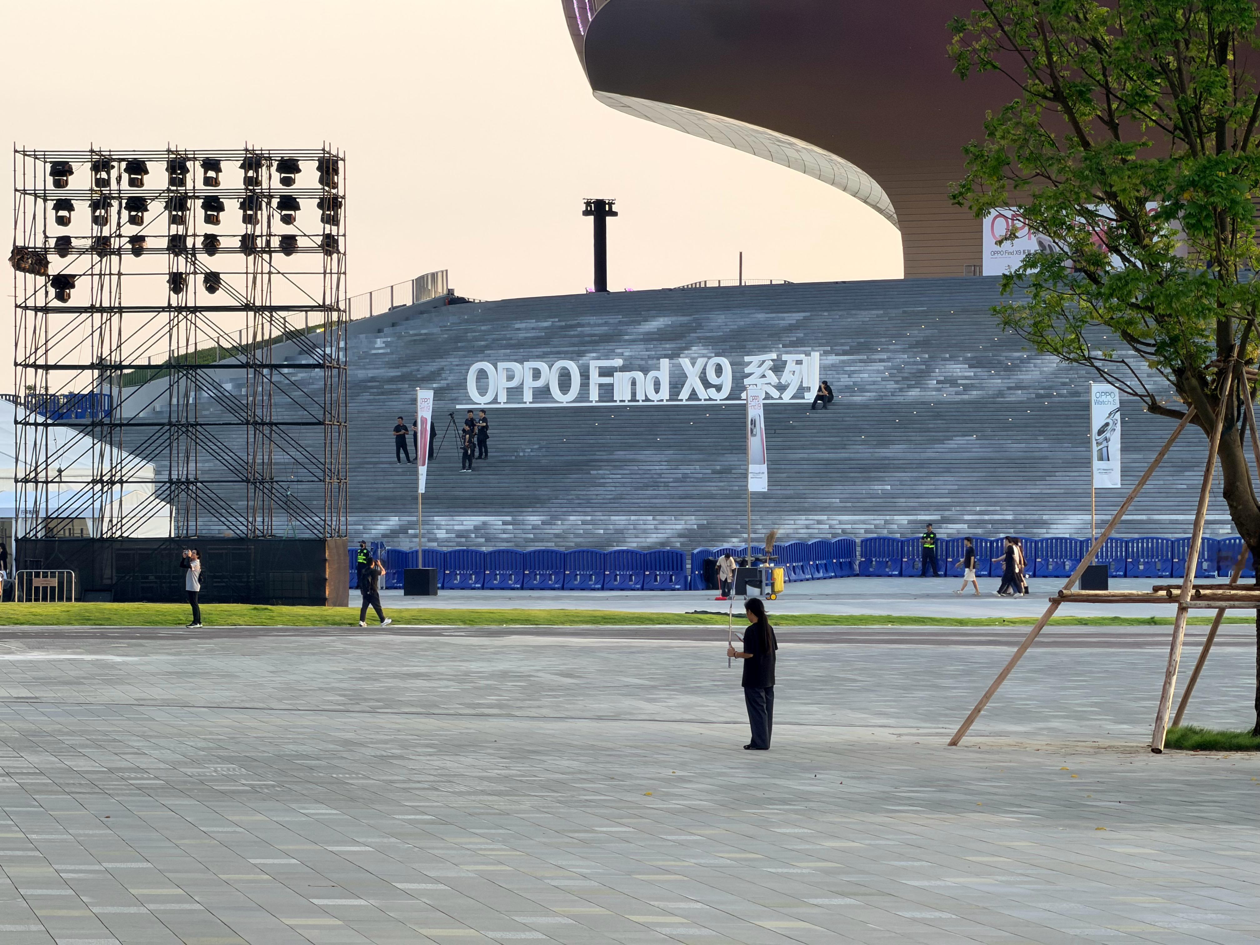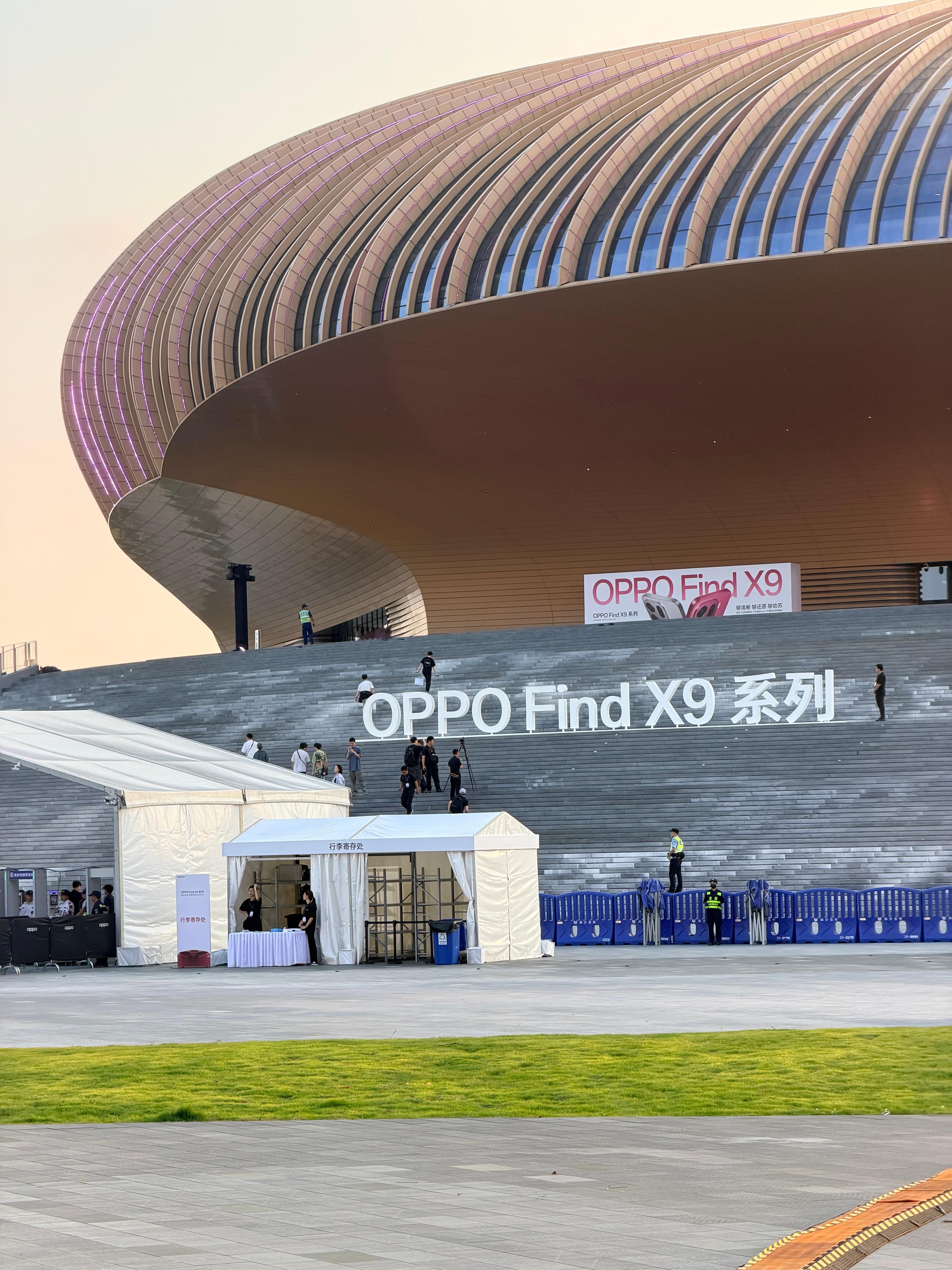 已经到OPPO Find X9发布会现场了,今天这个这个发布会的场馆好大,而且现在刚好是落日,好美!
