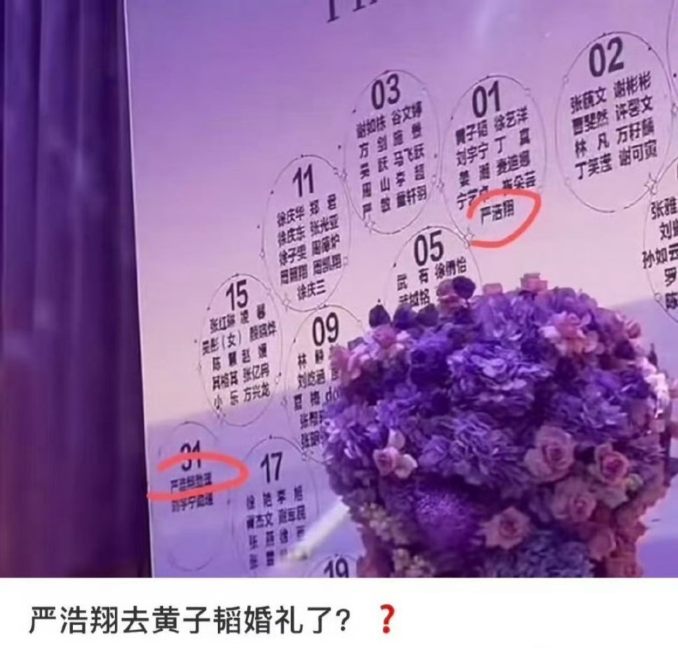 严浩翔黄子韬婚礼主桌严浩翔去了黄子韬的婚礼