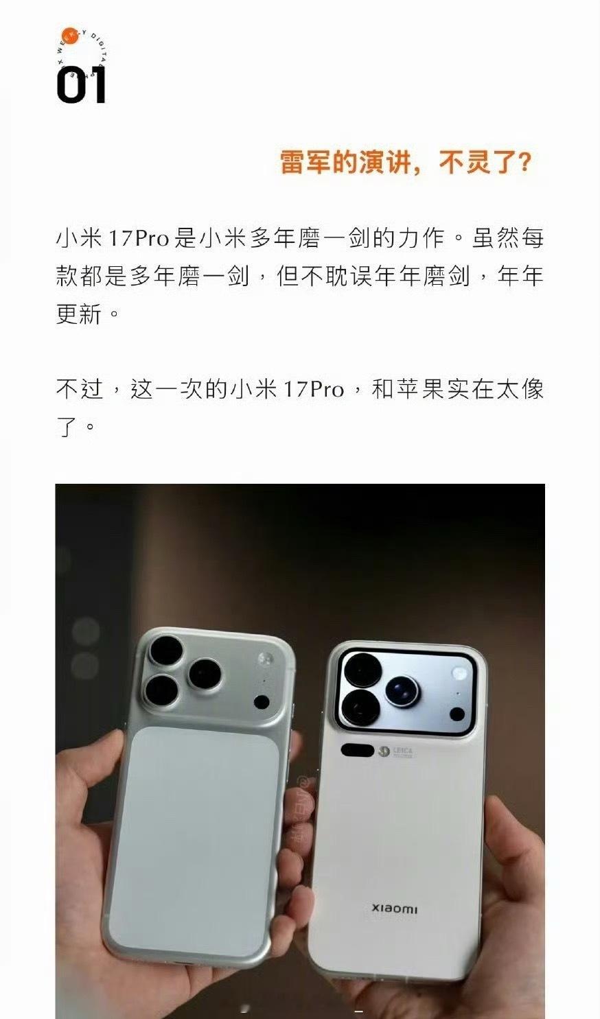 为什么雷军的口碑变了点开这个话题的第一张图我就笑了,说小米17 Pro和苹果太像了,黑你也要黑对地方啊[笑cry]