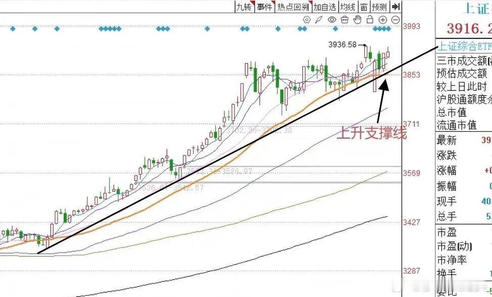 第一,如果指数往下调整的话,那么最近的上升支撑线就会被跌破。而且不仅跌破上升支撑线,还会跌破多周期均线。那么整体上证指数的上升结构就被打破了。所以我觉得这可能是主力并不想看到的事情。大家请看图一上证指数日线图。