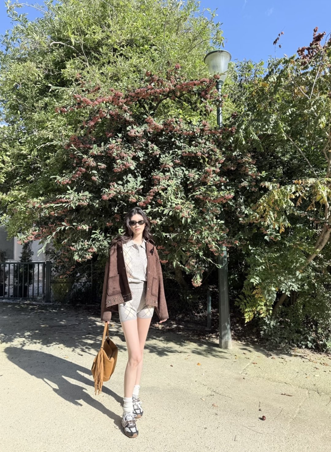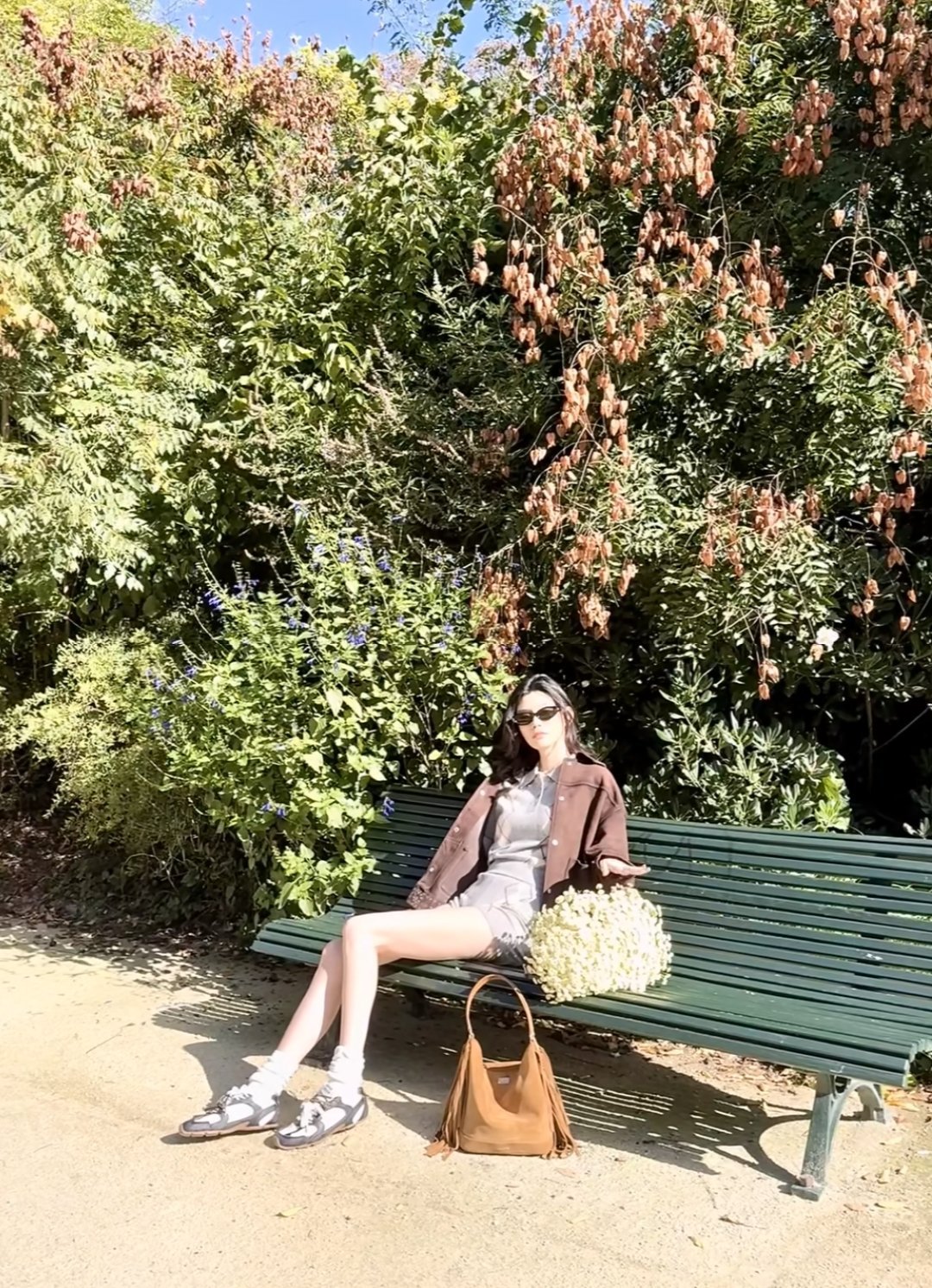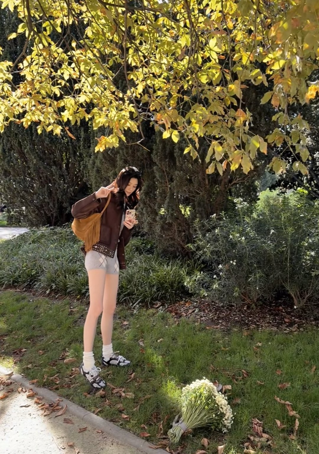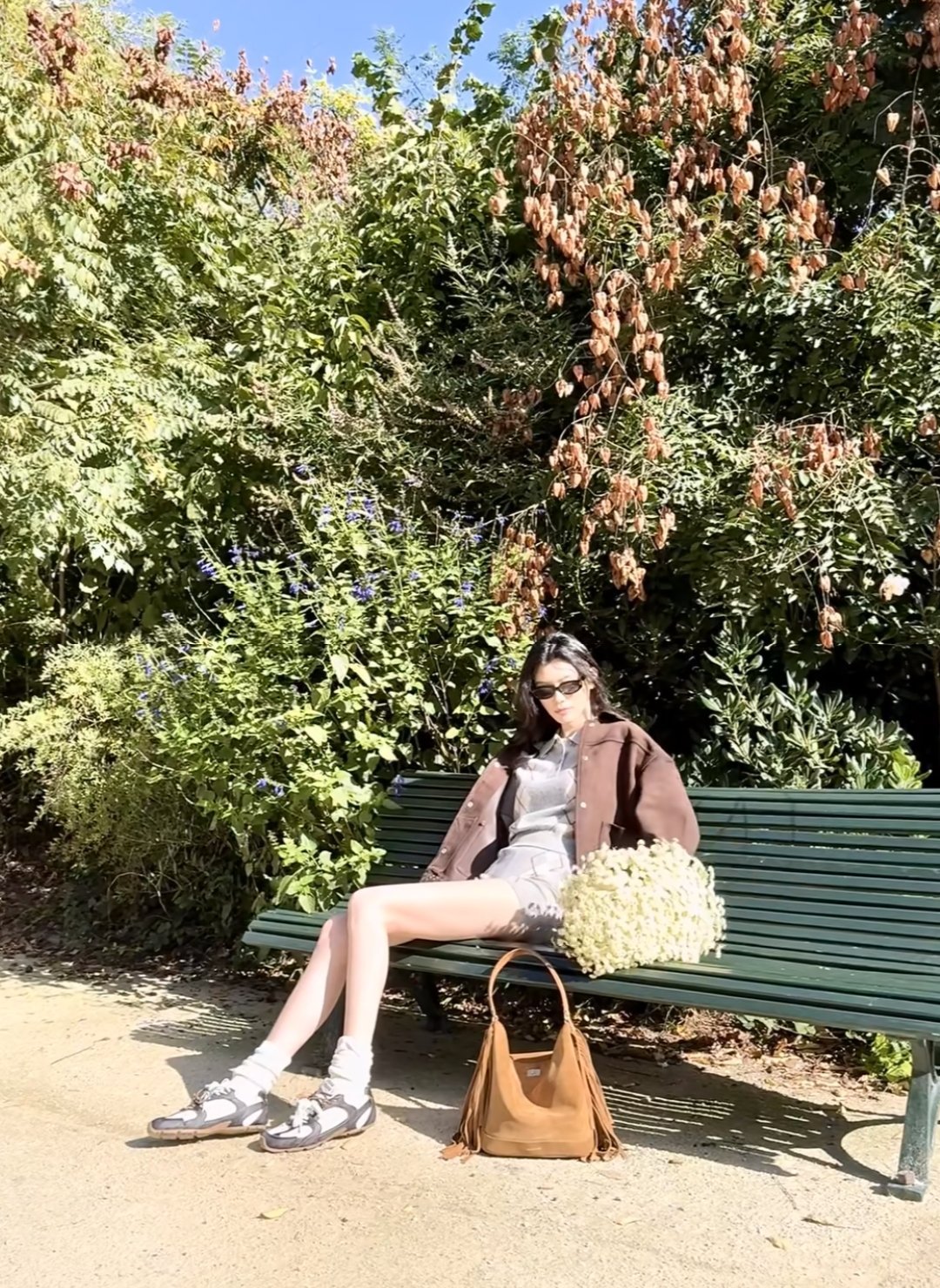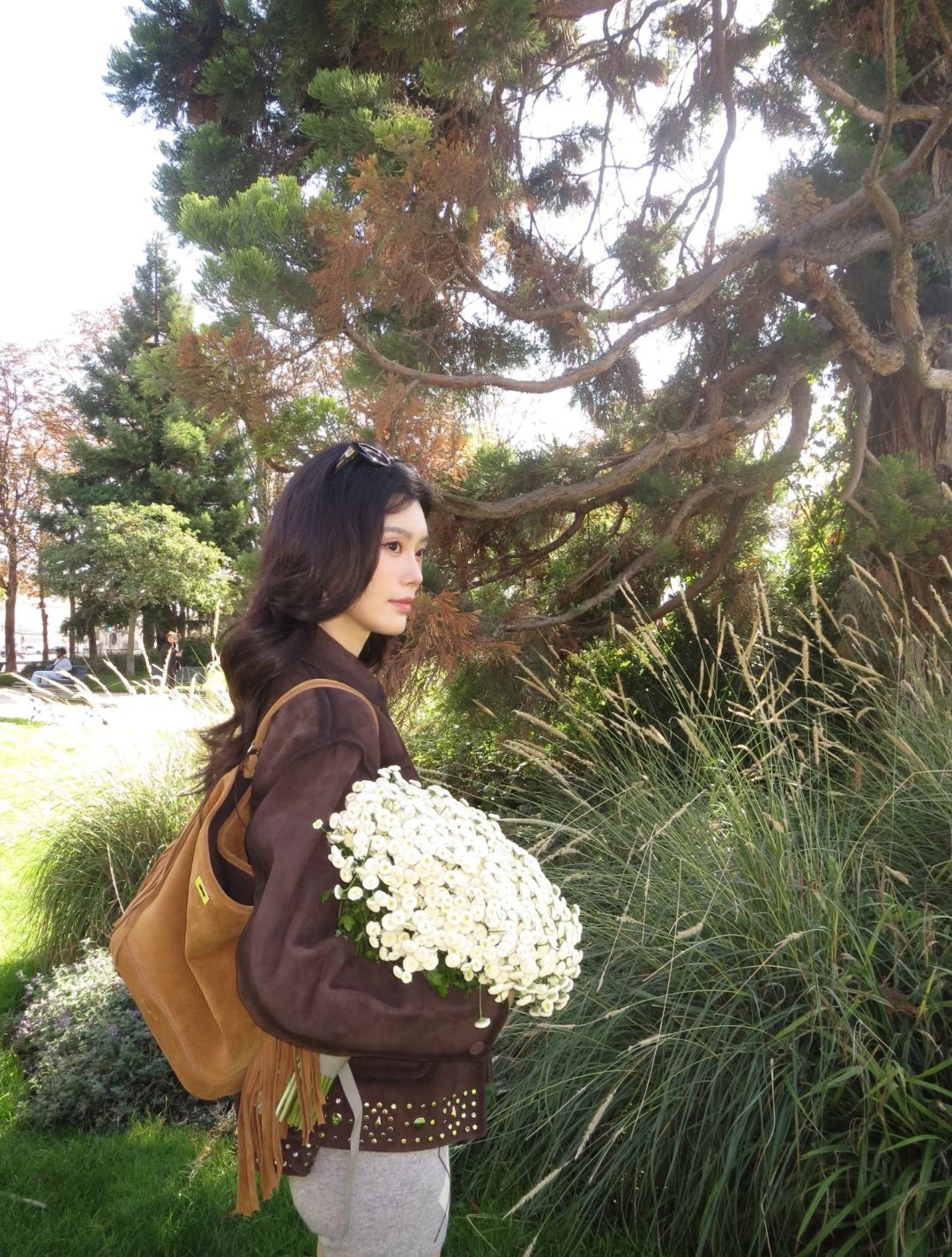 奚梦瑶分享了一些日常照,“带着花去公园走走”~