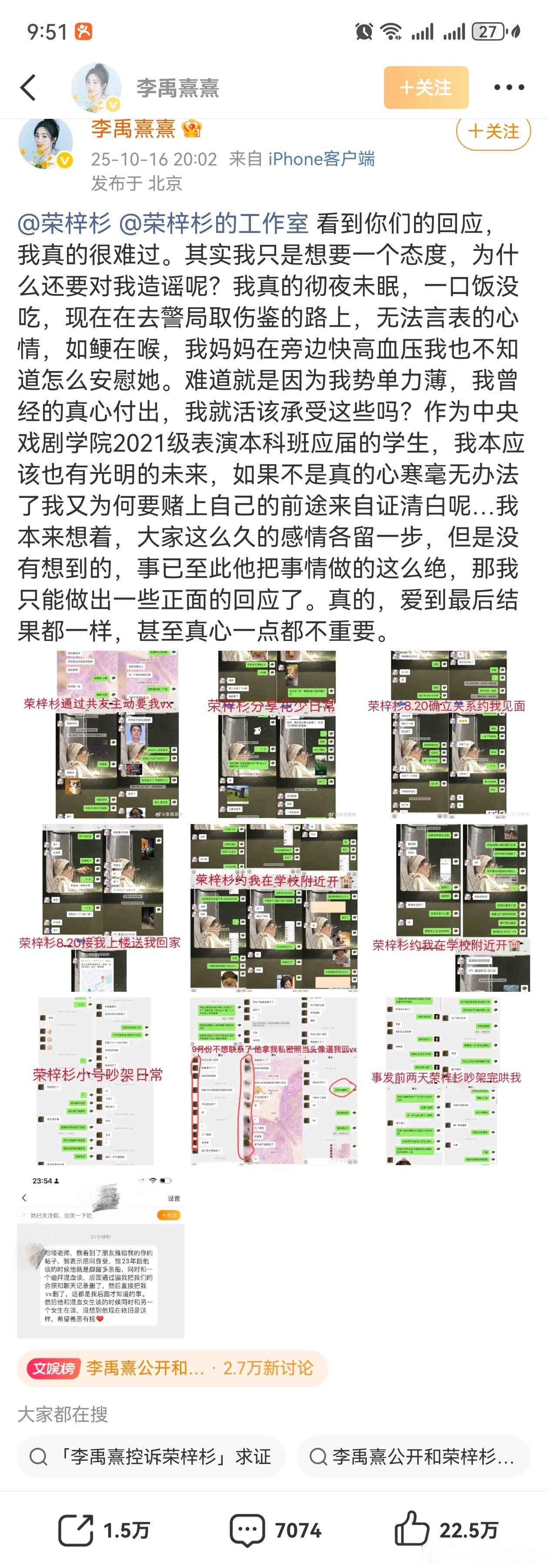 李禹熹公开和荣梓杉聊天记录如果是真的也塌不了,男的私生活方面大众包容度很高。虽然我是不会看他的戏。