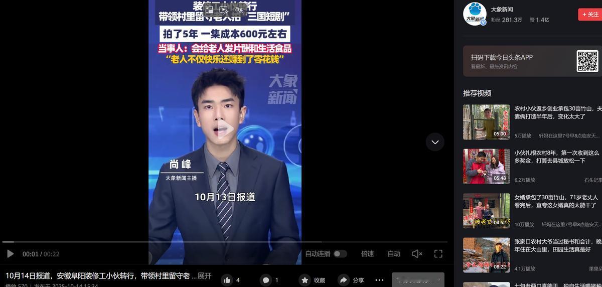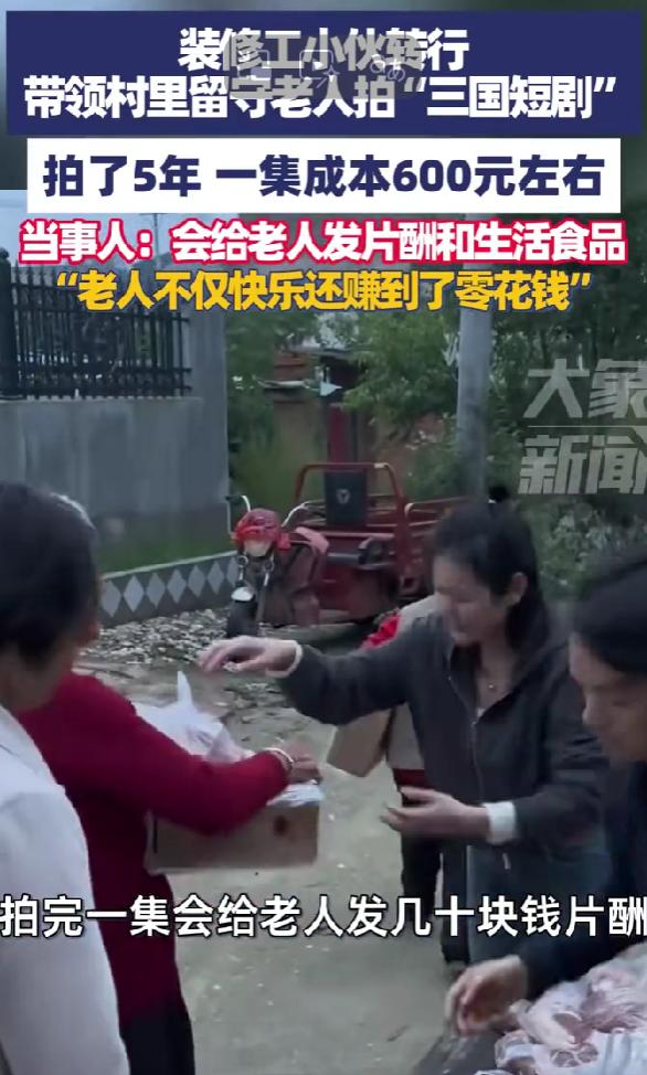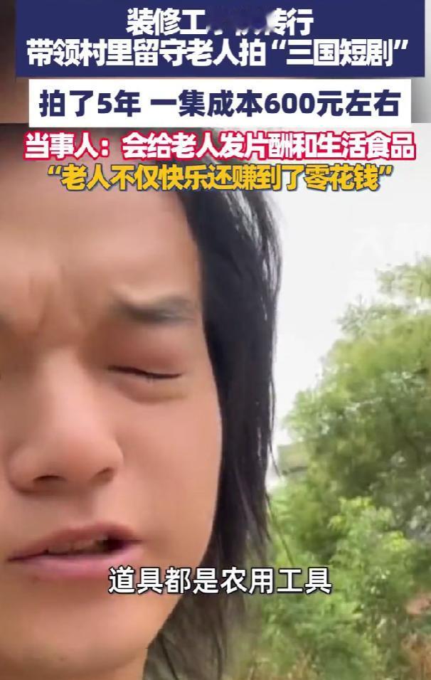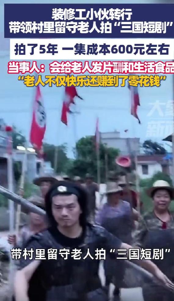 安徽,35岁男子原本是个装修工,但是他有个导演梦,于是辞职回农村,带村里的留守老人拍戏。日薪30到50块,再发点鸡鱼肉蛋当福利。 咱安徽阜阳的乡下,最近有个事儿传得挺暖,主角是 35 岁的鲍小光,这小伙子以前在城里干装修,手里的瓦刀、卷尺耍得熟练,日子过得也算稳当,每天有活干,月底能拿工钱,按说该知足了,可鲍小光心里头,一直揣着个没说出口的念想,他想当导演想拍点自己喜欢的东西。 其实这念头不是一天两天了,他打小就爱看《三国演义》,书翻得卷了边电视剧也反复看,总琢磨着要是能把这些故事用自己的方式拍出来该多好。 以前干装修的时候忙完活歇着,他就掏出手机刷别人拍的短视频,越看心里越痒,总觉得 “我也能试试”,后来实在按捺不住,干脆咬咬牙辞了城里的装修工作,收拾东西回了老家村子,他想在自己熟悉的土地上,圆这个藏了多年的导演梦。 回村后鲍小光第一件事就是找演员,他没去外面找专业的,就盯着村里的留守老人,这些老人大多单独住着,儿女在外打工,平时除了种种菜、喂喂鸡,也没别的事儿,日子过得挺单调。 一开始他去跟老人们说 “想请你们拍戏”,老人们还犯嘀咕,有的说 “我这老胳膊老腿的,哪会演戏啊”,有的怕他是开玩笑,鲍小光就耐着性子跟他们聊,说不用背复杂的台词,也不用做难动作,就是一起演演老辈人熟悉的故事,还能跟老伙计们一起热闹热闹。 老人们听着觉得新鲜,就试着来了几个,后来一看真挺有意思,来的人越来越多,最后凑了二十多个,平均年龄都快 70 岁了,鲍小光干脆给这个小团队起了个名儿,叫 “夕阳红剧组”。 拍戏的条件确实不宽裕,鲍小光没多少启动资金,全靠自己以前干装修攒的钱,拍摄设备就一部普通手机,道具更是 “就地取材”,家里的锅盖洗干净了,举起来就是古代的盾牌,村民的电瓶车停在那儿,拍骑马的戏时,老人们坐在上面,镜头一拉,看着就像骑在战马上,连地里用的粪勺,刷亮了都能当兵器用。 戏服也没花钱买,是村里的裁缝用大家捐的旧布料改的,针脚不算特别整齐,但穿在老人们身上,倒有股子接地气的劲儿。 鲍小光还特别懂老人们,知道他们记不住复杂的古文台词,就把剧本全改成了阜阳本地话,还加了不少生活里的话,比如拍打仗的戏,“将军” 喊一句 “打赢了咱就回家收麦子去”,老人们念着顺口,演起来也自然,看的人也觉得亲切忍不住想笑。 更让人觉得贴心的是,鲍小光从不委屈老人们,他知道老人们年纪大怕出意外,就给每个参演的老人都买了意外伤害保险,只要天冷或者下雨,绝对不安排拍摄,就怕老人们冻着、淋着生病。 拍摄时间也掐得准,每天最多拍四个小时,都是选在上午或者下午凉快的时候,绝对不耽误老人们回家喂猪、浇菜,也不影响他们休息。 至于报酬虽然不多,但鲍小光从不含糊,每个老人每天能拿到 30 到 50 块钱的 “片酬”,逢年过节或者拍得顺利了,他还会给大家发福利,有时候是几斤新鲜的鸡鱼肉蛋,有时候是洗衣粉、肥皂这些日用品。 老人们拿着钱和东西,嘴上总念叨:“小光这孩子实在,跟着他拍戏,不光能挣点零花钱,还能跟老伙计们一起说说笑笑,比在家闷着强多了。” 鲍小光自己呢,一个人扛下了不少活,既是导演,要教老人们怎么演,又是编剧要改剧本,还是摄影师,拿着手机找角度拍。 一开始家里人也不理解,说他放着好好的装修不干,回村 “瞎折腾”,但看着他每天忙得有劲头,看着老人们笑得开心,家里人后来也慢慢支持他了。 他们拍的那些短剧传到网上后,不少人都喜欢,说这是 “全网成本最低的大片”,其实大家喜欢的,不只是那些简陋却有趣的道具,更是那份藏在镜头里的真诚,一个年轻人圆了自己的导演梦,一群老人的生活多了盼头,这份互相成全的温暖,比什么都打动人。 (信息来源:大象新闻——安徽阜阳装修工小伙转行,带领村里留守老人拍“三国短剧”,一集的成本600元左右,会给老人发片酬和生活食品,当事人称:“老人不仅快乐还赚到了零花钱”)