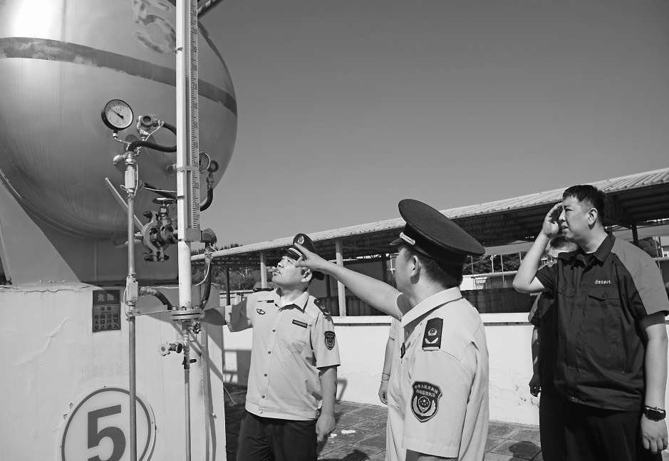 近日,北京市顺义区市场监管局开展液化石油气、车用天然气和工业气体充装站安全检查。执法人员重点检查充装单位的充装许可是否在有效期内、是否充装超期报废气瓶,站内特种设备是否办理使用登记,紧急切断装置、安全阀、压力表是否有效等。本报记者董芳忠摄影报道
