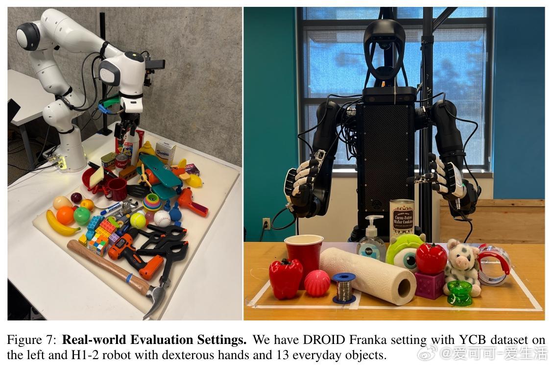实验证明,该方法在模拟环境和真实机器人(Franka机械臂及H1-2类人型机器人)上均表现优异: