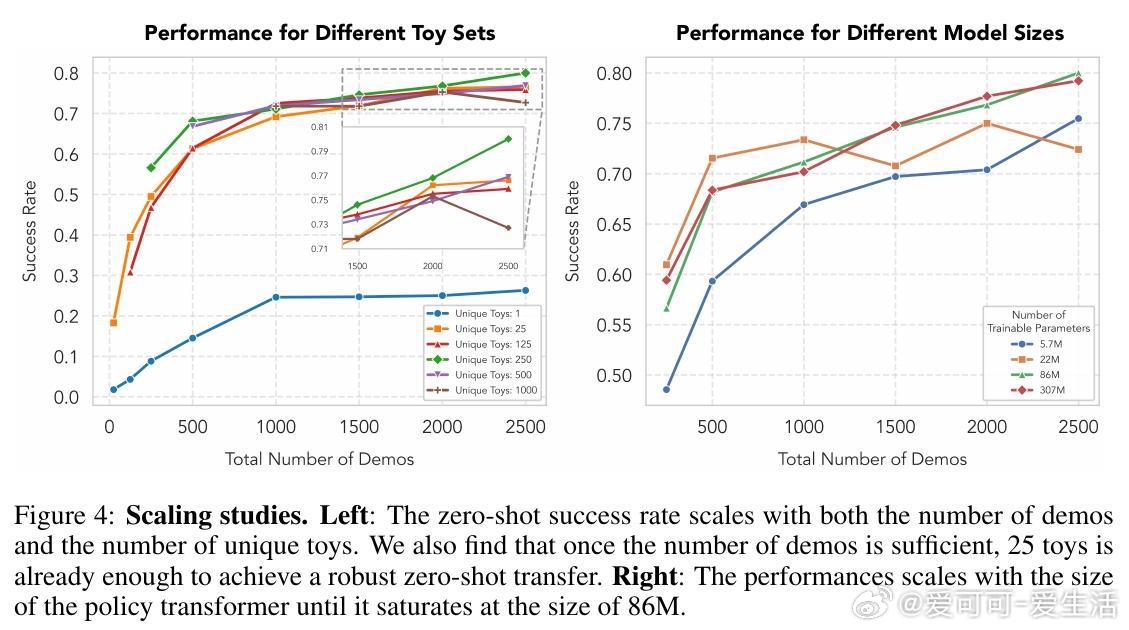 - 研究还系统分析了训练玩具的数量、多样性及演示次数对泛化性能的影响,发现演示次数对性能提升尤为关键。